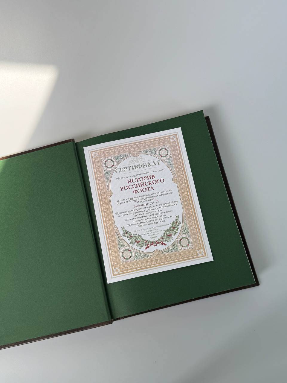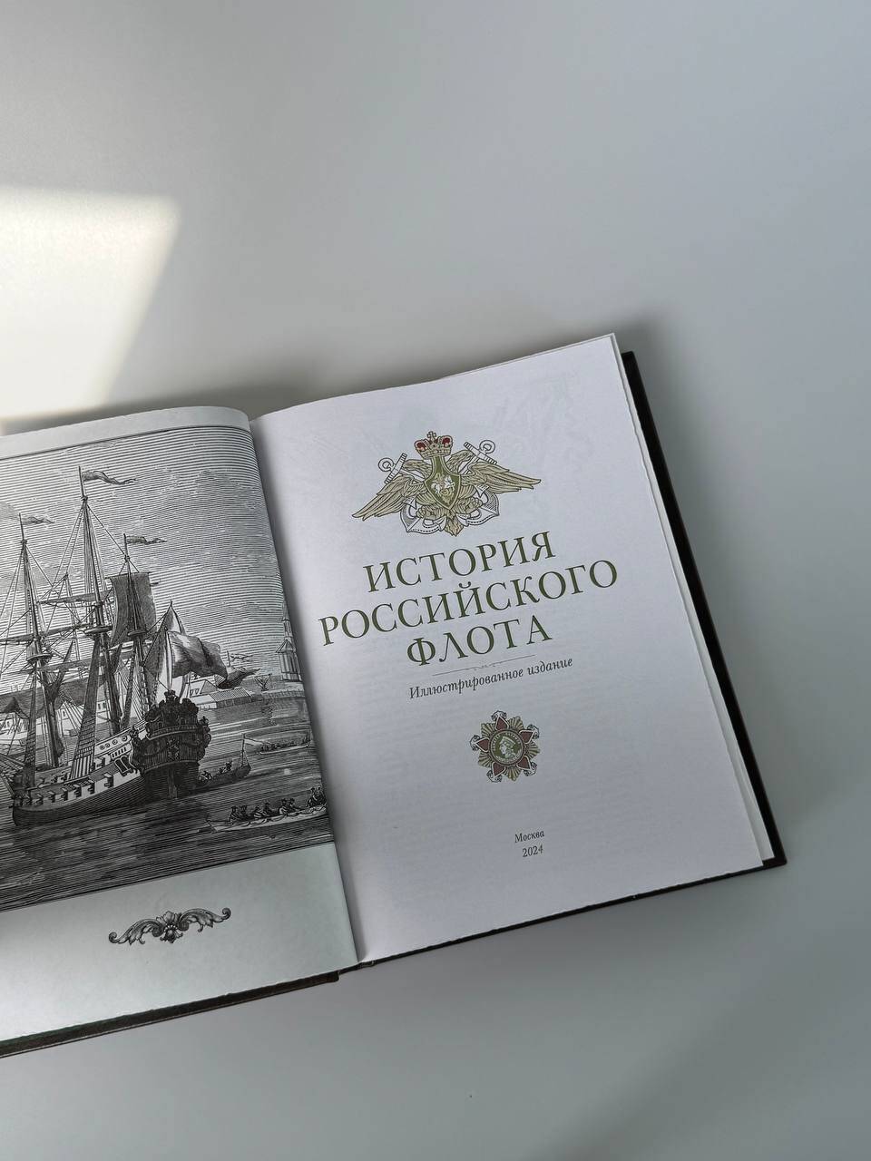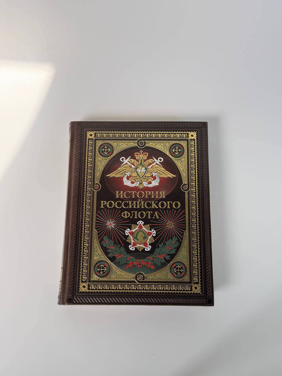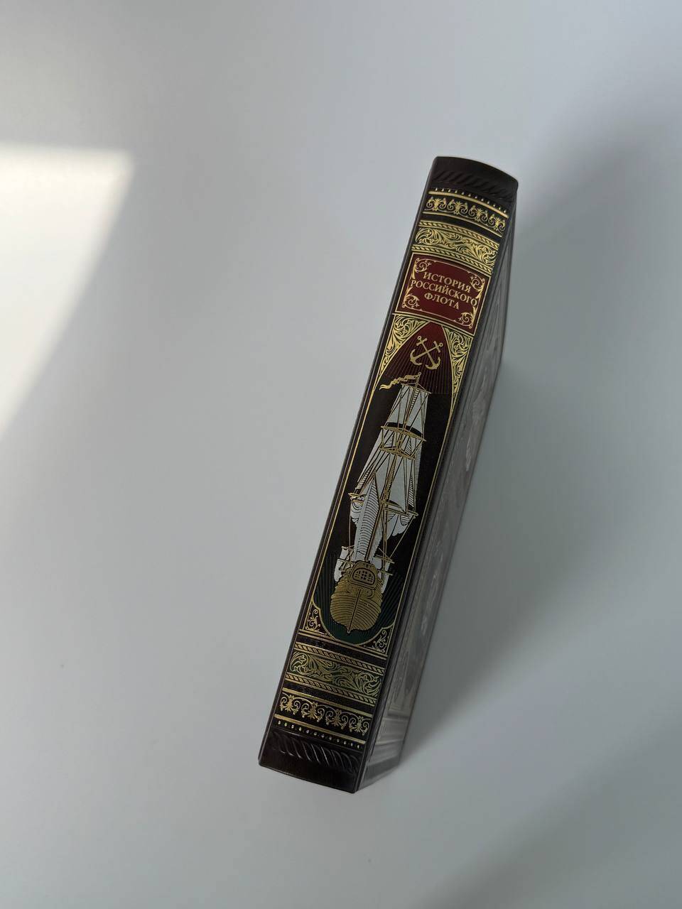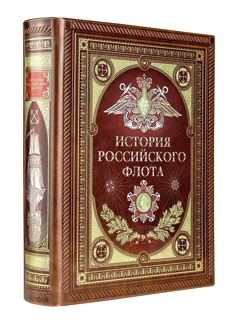 История российского флота. Книга в коллекционном кожаном переплете ручной работы с окрашенным и золочёным обрезом и многоцветным тиснением