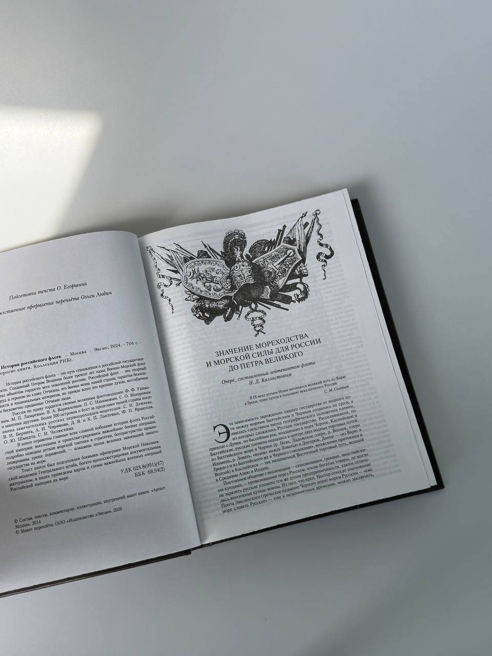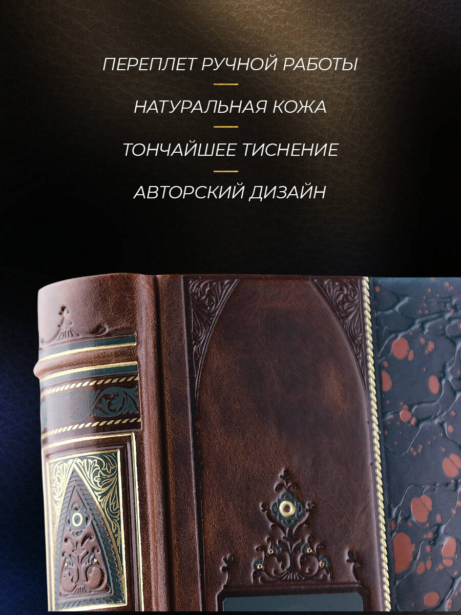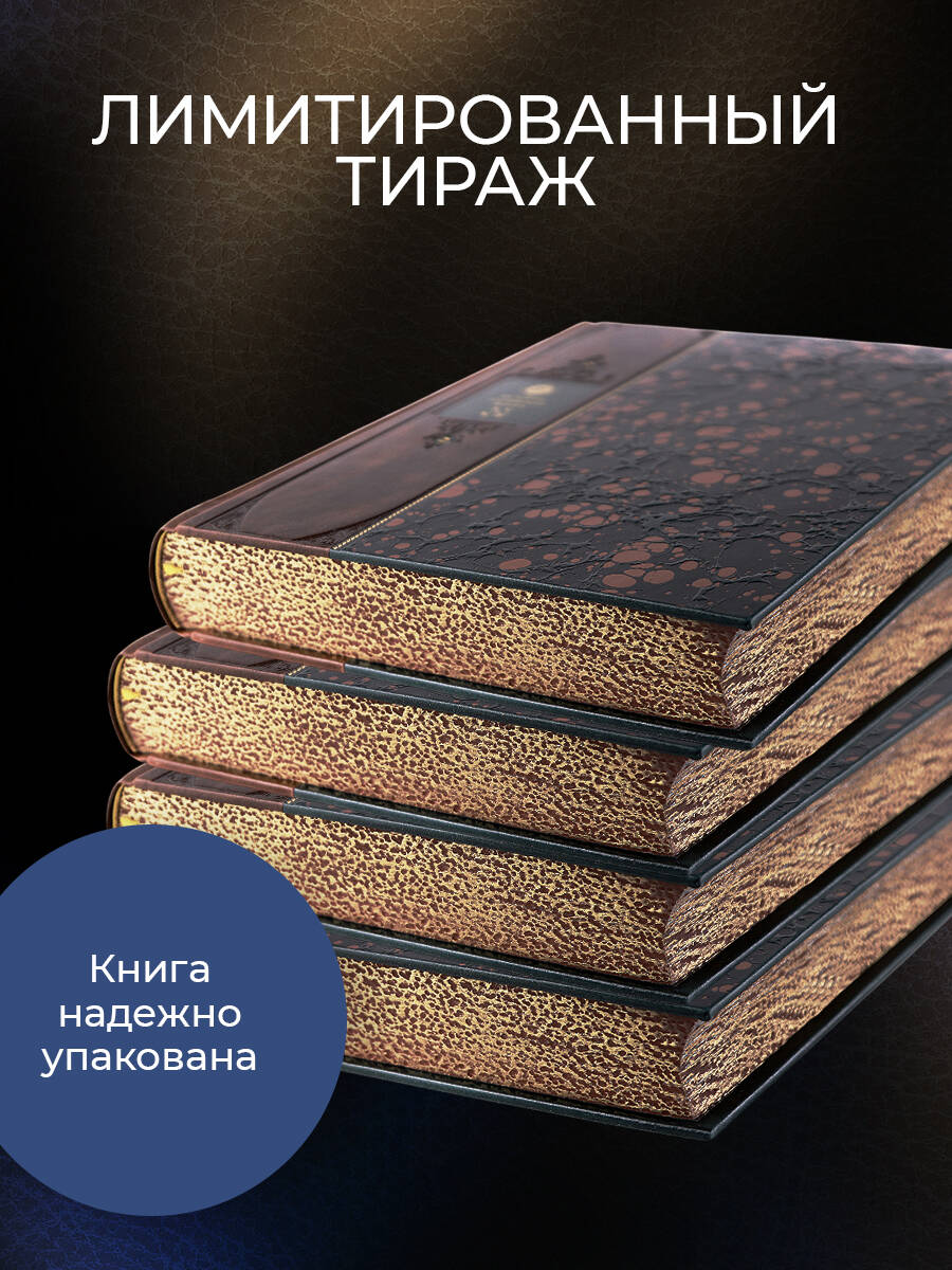 Книга в коллекционном переплёте, изготовленном из натуральной гладкой кожи, украшенном тончайшим тиснением в стиле ампир. 5 видов тиснения - золотое, серебряное, глубокое рельефное и тиснение двумя видами натурального пигмента. На предней сторонке изображен картуш с морской атрибутикой, на корешке - парусник. Переплет изготовлен по технологии 19 века, в полном соответствии с лучшими образцами переплетов русских мастеров. Лента для закладывания страниц и каптал, скрепляющий верх и низ объемного тома, изготовлены из шелка. Бумага в книге легкая, матовая, что обеспечивает комфортное чтение даже длительное время, цветные иллюстрации напечатаны на высокобелой мелованной бумаге. Обрез книги окрашен, торшонирован и вызолочен вручную. К книге прилагается красочный сертификат, подтверждающий уникальность издания, он вложен в каждый экземпляр и пронумерован вручную.| Издательство | ООО "Издательство "Эксмо" |