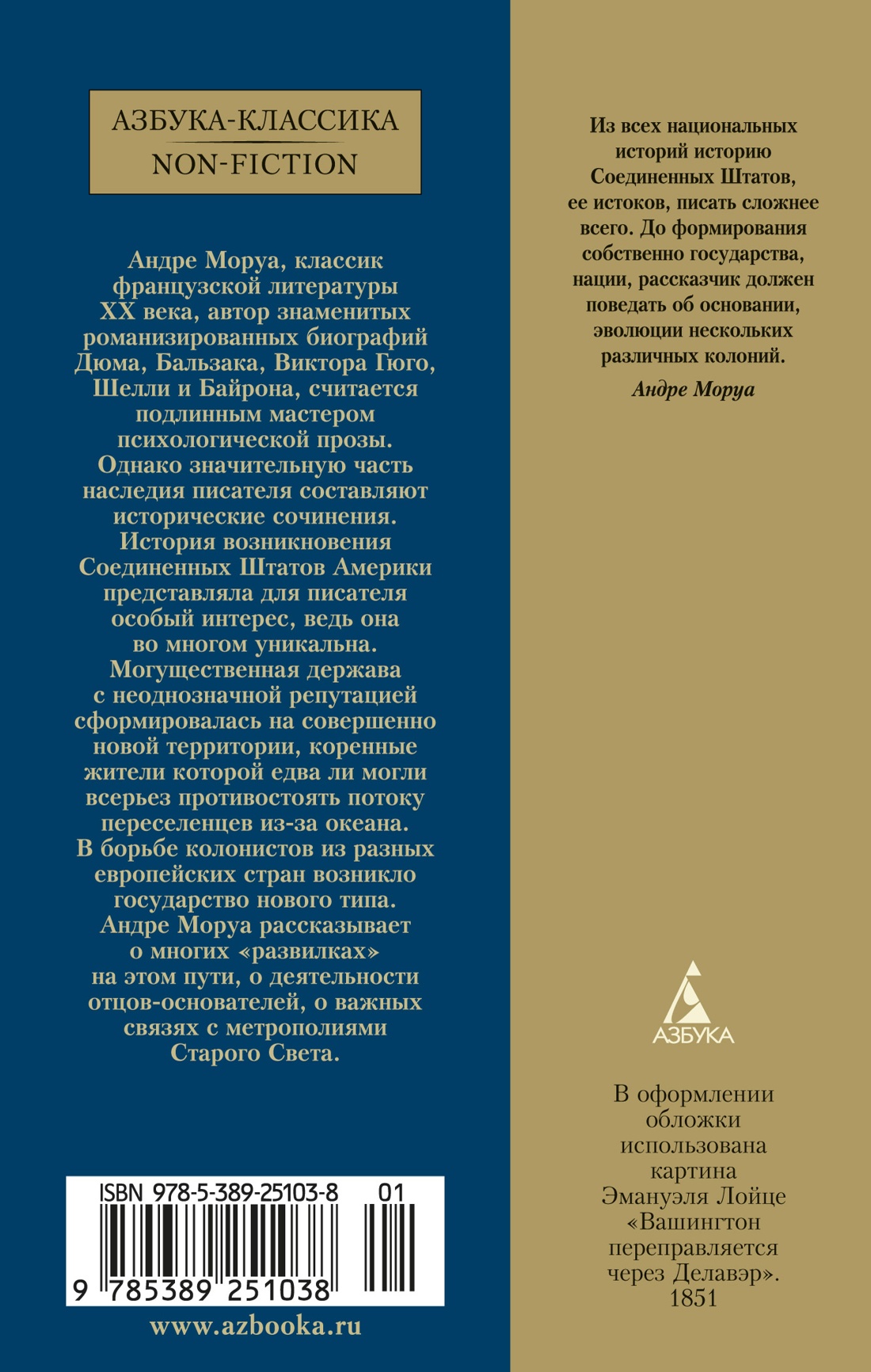 Андре Моруа, классик французской литературы XX века, автор знаменитых романизированных биографий Дюма, Бальзака, Виктора Гюго, Шелли и Байрона, считается подлинным мастером психологической прозы. Однако значительную часть наследия писателя составляют исторические сочинения. История возникновения Соединенных Штатов Америки представляла для писателя особый интерес, ведь она во многом уникальна. Могущественная держава с неоднозначной репутацией сформировалась на совершенно новой территории, коренные жители которой едва ли могли противостоять новым поселенцам. В борьбе колонистов из разных европейских стран возникло государство нового типа. Андре Моруа рассказывает о многих «развилках» на этом пути, о деятельности отцов-основателей, о важных связях с метрополиями Старого Света.| Издательство | Азбука |