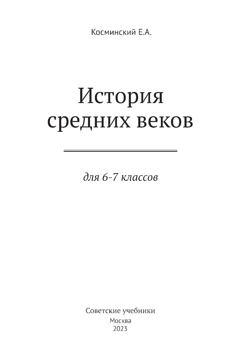 Как славянам удалось покорить значительную часть Византийской империи и превратить рабов в свободных крестьян? Почему в Средневековье рыцари, священники и монахи не пользовались уважением горожан? Какими были первые западноевропейские университеты и какой вклад в науку и культуру внесли великие учёные прошлого? Учебник «История средних веков» Е.А. Косминского предназначен для учащихся 6-7 классов средней школы. Материалы охватывают хронологический период от падения Западной Римской империи в V в. до зарождения капитализма в Европе в XVI-XVII вв. Три масштабных раздела содержат главы с описанием основных исторических событий, политической, культурной, социальной и экономической жизни разных государств, влияния церкви на общественный строй. Многочисленные иллюстрации делают издание ещё полезнее и увлекательнее. Пособие пригодится как учителям и репетиторам, так и родителям, которые занимаются с детьми дополнительно.| Издательство | Концептуал |