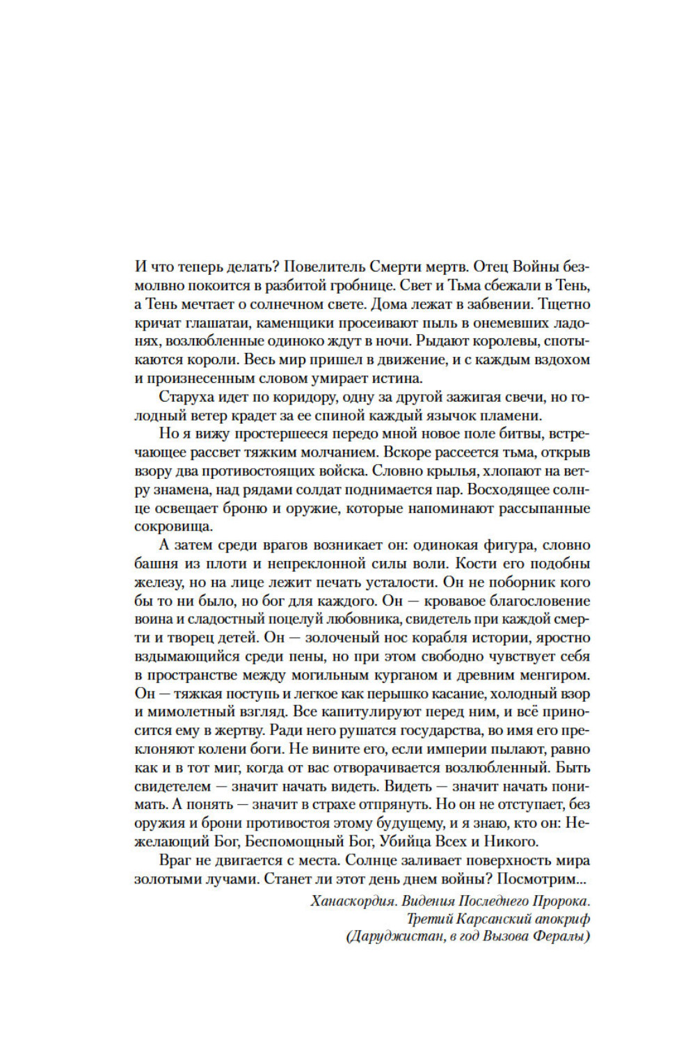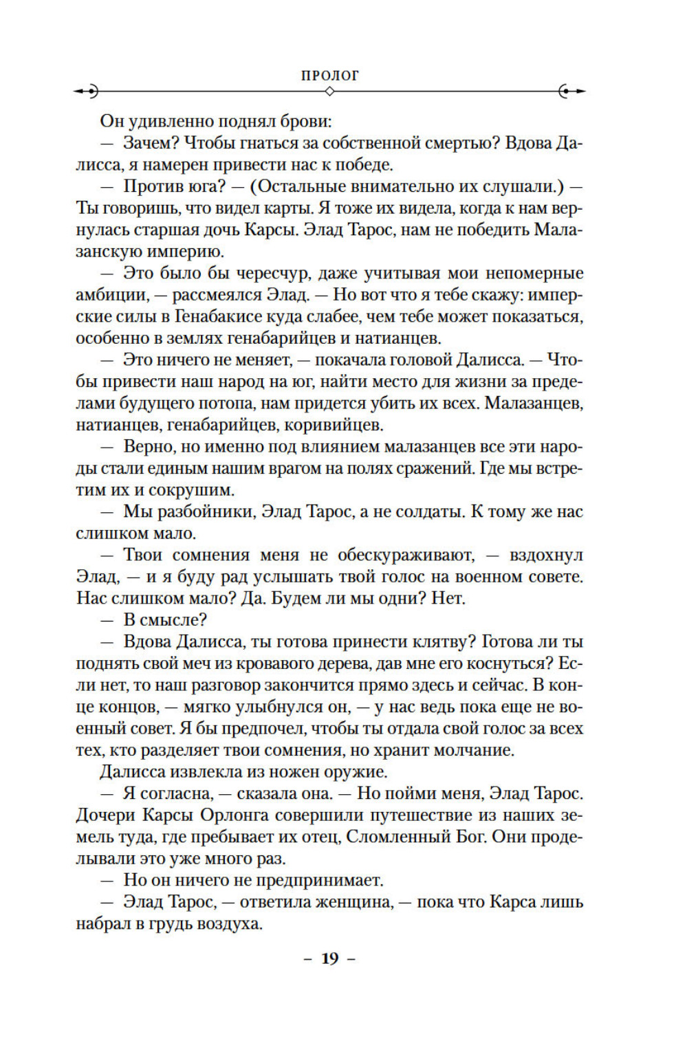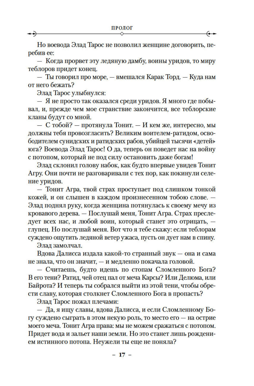 Много чего изменилось в Малазанской империи. Поселок Серебряное Озеро восстановился после хаоса, принесенного воинами-теблорами, и северные теблорские племена больше не вторгаются в Южные земли. Один из воинов, что когда-то напал на поселок, великан Карса Орлонг, теперь считается у теблоров богом, хотя живет в далеком Даруджистане, но, похоже, этот бог не желает участвовать в жизни соплеменников. В горах, где живут теблоры, появился новый военный вождь, и он готов бросить вызов Карсе Орлонгу - даже если для этого придется с кровью пробиваться через земли Малазанской империи. А это значит - грядут новые потрясения, и усугубляет ситуацию то, что на севере начинается великое таяние льдов, оттуда движется водяная стена, и приближающийся страшный потоп может погубить всех.| Издательство | Азбука |