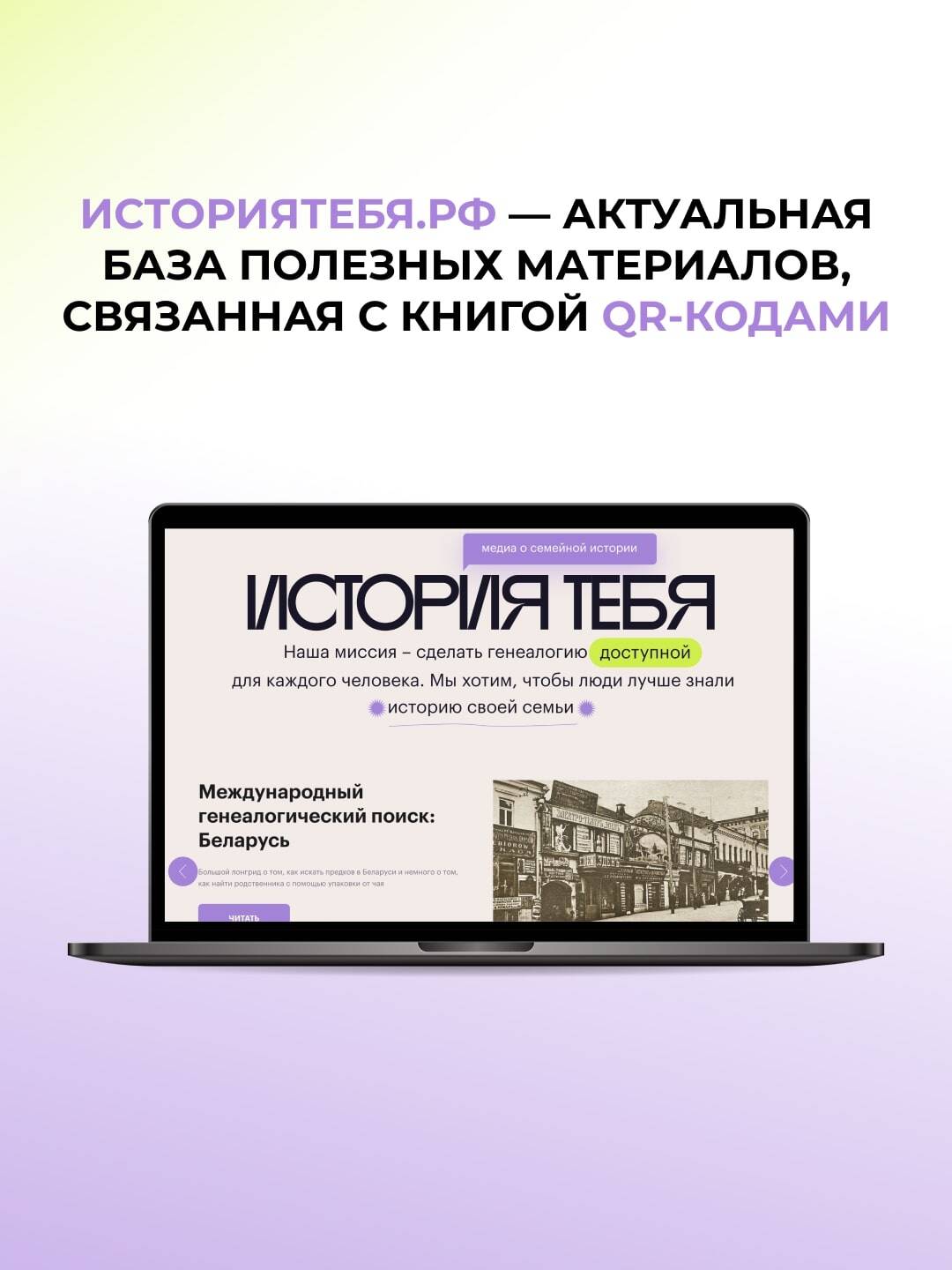 Все мы знаем, что важно помнить о своих корнях, но не все мы действительно много знаем о них. Руководство по генеалогии из серии «ИСТОРИЯ ТЕБЯ» - это интерактивное погружение в историю своего рода, которое включает пошаговые инструкции по созданию семейного древа: от поиска информации до систематизации данных. Теперь вы сможете самостоятельно восстановить историю своей семьи с нуля и передать это ценное знание будущим поколениям. Книга написана простым языком и включает теорию, схемы, инструкции, QR-коды на алгоритмы поиска от экспертов-генеалогов. С ней начать работу будет легко, а результат не заставит себя ждать!| Издательство | ИЗДАТЕЛЬСТВО "АСТ" |