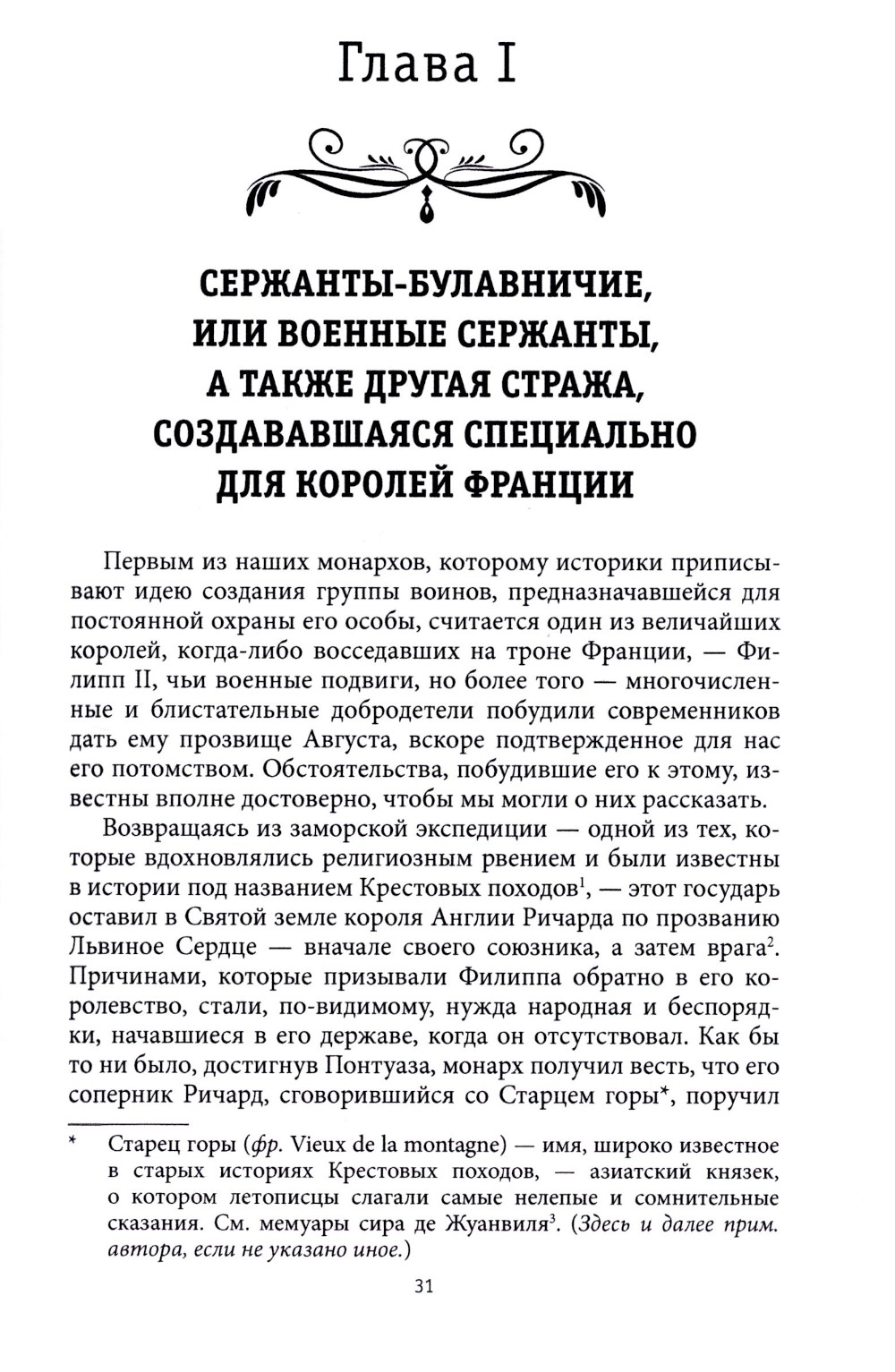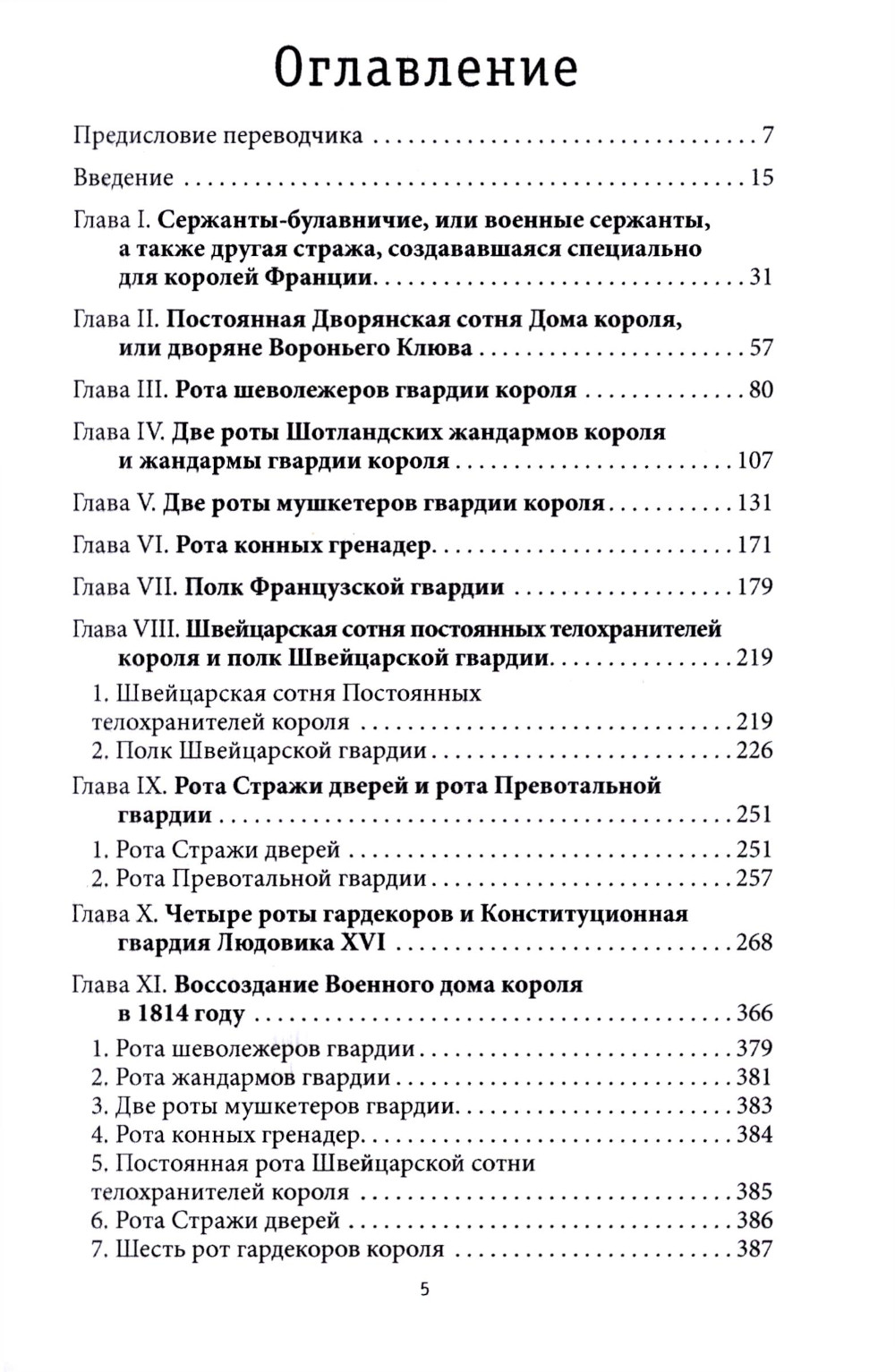 Книга рассказывает об истории королевской гвардии старой Франции - со времени возникновения в 1192 г. стражи сержантов-булавничих до основания в XVII в. собственно Военного дома; истоках и обстоятельствах создания гвардейских формирований, их развитии, усовершенствовании, практике службы, атрибутике, традициях, вехах боевого пути и, наконец, роспуске в начале Великой Французской революции и возобновлении в годы реставрации Бурбонов. На русский язык «История Военного дома королей Франции» переводится впервые. Перевод снабжен подробными примечаниями и комментариями, которые существенно дополняют авторский текст и включают ссылки на источники, использованные как автором, так и переводчиком, а также персоналии и разъяснения специальных военных терминов.