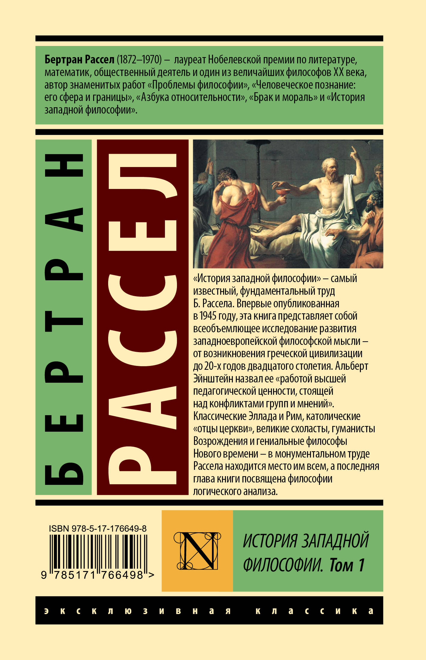 - Бертран Рассел - известный английский философ, математик и общественный деятель, лауреат Нобелевской премии по литературе. - «История западной философии» - самый известный и фундаментальный труд Бертрана Рассела, охватывающий всю историю западной философской мысли от досократиков до начала XX века. - Первый том «Истории западной философии» посвящен периоду от возникновения греческого государства до средних веков. - Издание в серии «Эксклюзивная классика (Лучшее)» - в узнаваемом оформлении и твердой обложке.| Издательство | Издательство "АСТ" |