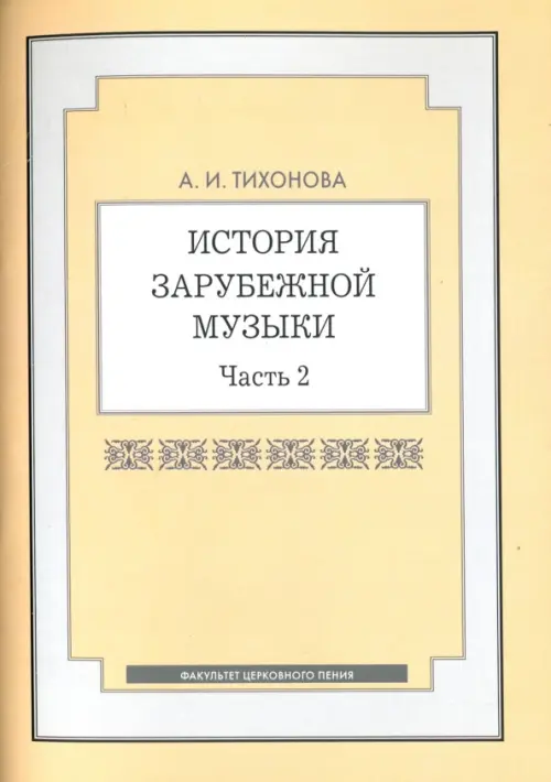 Учебное пособие А. И. Тихоновой "История зарубежной музыки: Учебное пособие", Ч. 2, соответствует содержанию авторского учебного курса того же названия и предназначено для самостоятельной работы студентов Факультета церковного пения в процессе его освоения.