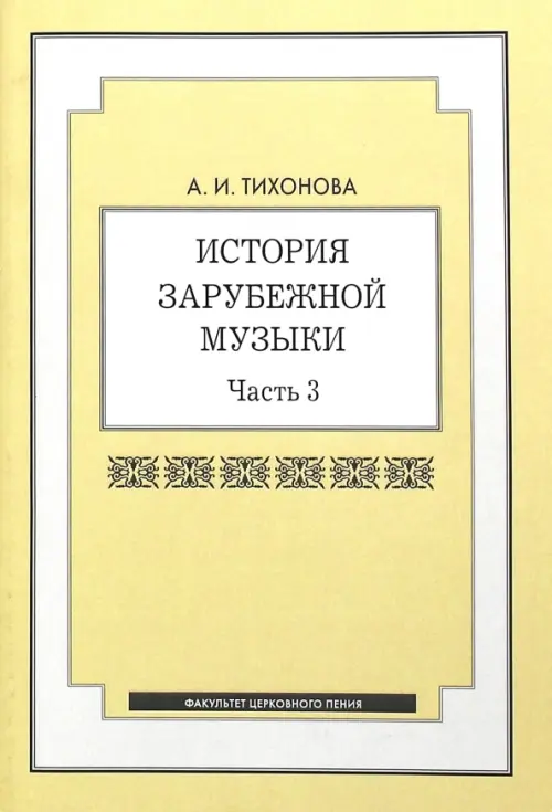 Учебное пособие кандидата искусствоведения, профессора ПСТГУ А. И. Тихоновой "История зарубежной музыки", Ч. 3, является продолжением двух первых частей, сохраняя ранее созданную автором структуру работы. Две главы третьей части пособия посвящены музыке рубежа XIX-XX веков и первой половины XX века. Издание содержит характеристику важнейших художественных стилей зарубежной музыки указанного периода, а также характеристику творчества наиболее значительных композиторов этого времени. В монографических фрагментах рассматриваются основные тенденции, выявляющие индивидуальность композиторов, анализируются их значительные произведения. Текст пособия представляет собой обстоятельный, развернутый комментарий к фонохрестоматии по курсу "История зарубежной музыки", также адресованной студентам Факультета церковного пения Православного Свято-Тихоновского гуманитарного университета.