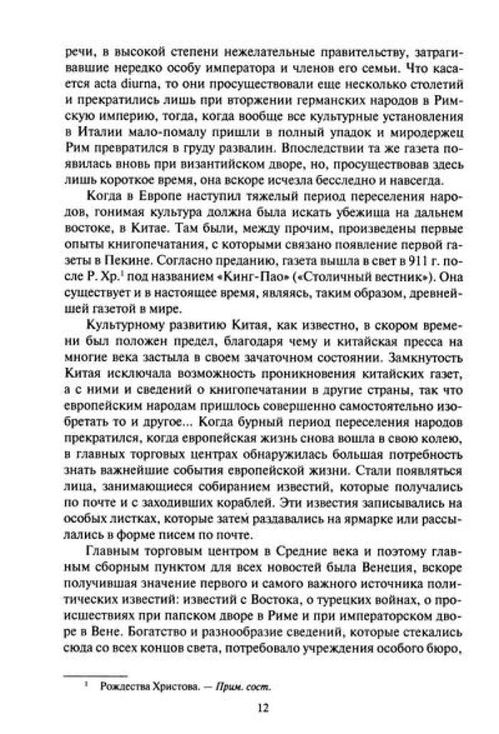 В хрестоматию вошли избранные части классических трудов по истории зарубежной журналистики, опубликованных на рубеже XIX-XX веков. Представлены ключевые этапы становления и эволюции прессы в Германии, Великобритании, Франции, Японии и Китае. Предназначена для студентов факультетов журналистики, специалистов в области медиакоммуникаций и всех, кто интересуется историей средств массовой информации.| Издательство | АСПЕКТ- ПРЕСС |