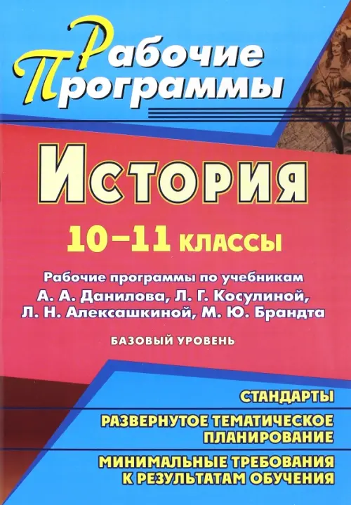 Рабочая программа - нормативно-управленческий документ, характеризующий систему организации образовательной деятельности педагога. В пособии представлены рабочие программы по истории для 10-11 классов (базовый уровень), разработанные на основе авторской программы А.А. Данилова, Л.Г. Косулиной. Каждая программа содержит учебно-тематический план, требования к уровню подготовки учащихся, характеристику учебно-методического обеспечения, а также развернутое тематическое планирование системы уроков и педагогических средств.