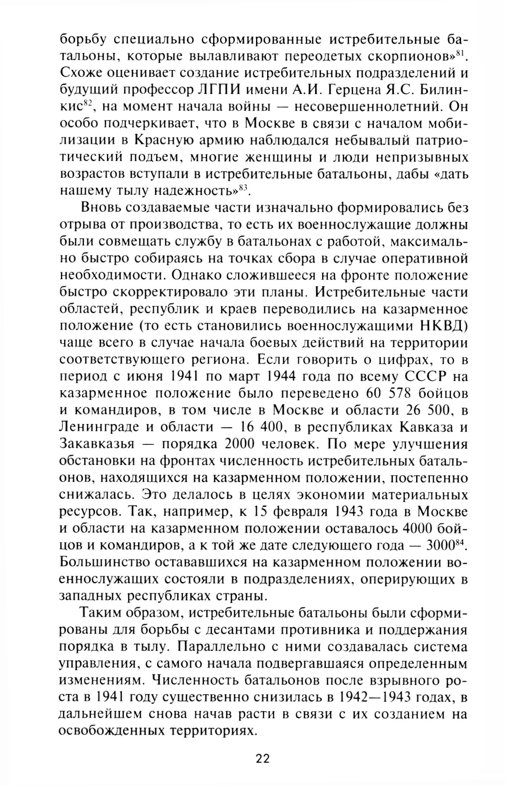 В книге научного сотрудника Санкт-Петербургского института истории РАН, кандидата исторических наук Т.Д. Медведева рассматривается один из малоизученных аспектов истории Великой Отечественной войны: формирование, комплектование, служебно-боевая деятельность истребительных батальонов НКВД. Явившись примером эффективной советской мобилизационной модели военного времени, в отличие от ополчения, они «пережили» всю войну. Автор анализирует организацию, социальный состав, способы боевого применения истребительных батальонов в различных регионах СССР, уделяя особое внимание ключевым этапам их истории: созданию в первые дни войны; служебно-боевой деятельности в тыловой зоне и использованию в боевых порядках Красной армии в 1941 - 1942 гг.; несению службы на освобождаемой от врага территории, в том численна заключительном этапе войны - в западных регионах СССР.