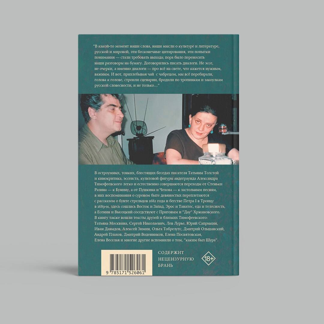 Диалоги, проза, мемуары: книга памяти выдающегося публициста и критика Александра Тимофеевского, собранная Татьяной Толстой. Коллекция тонкой прозы, квинтэссенция остроумной и печальной мудрости, присущей человеку, стоявшему у истоков современной российской интеллектуальной публицистики, непревзойденному мастеру сauserie, уходящего стиля ироничных и интеллектуальных колонок. Культурный разговор: в сборник вошли как отдельные тексты авторов книги, так и их эссе блестящие диалоги о литературе, кинематографе, русской истории и характере.| Издательство | ИЗДАТЕЛЬСТВО "АСТ" |