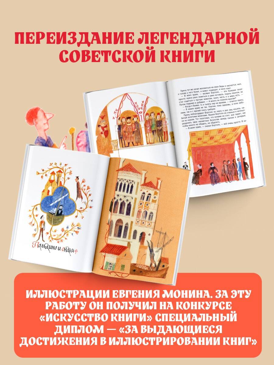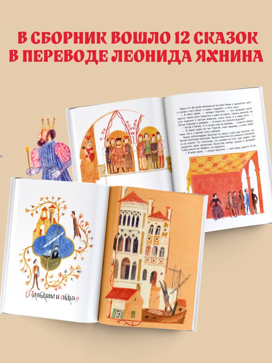 В сборник вошло двенадцать народных сказок из солнечной Италии. На русский язык их перевёл и пересказал поэт, писатель и драматург Леонид Яхнин. Добрые, отважные и находчивые герои сказок ищут клады, отправляются в гости к ветру и спорят с самим королём! Иллюстрации к книге нарисовал художник-график и иллюстратор детских книг Евгений Монин. За эту работу он получил на конкурсе «Искусство книги» специальный диплом - «За выдающиеся достижения в иллюстрировании книг».| Издательство | Издательство "АСТ" |