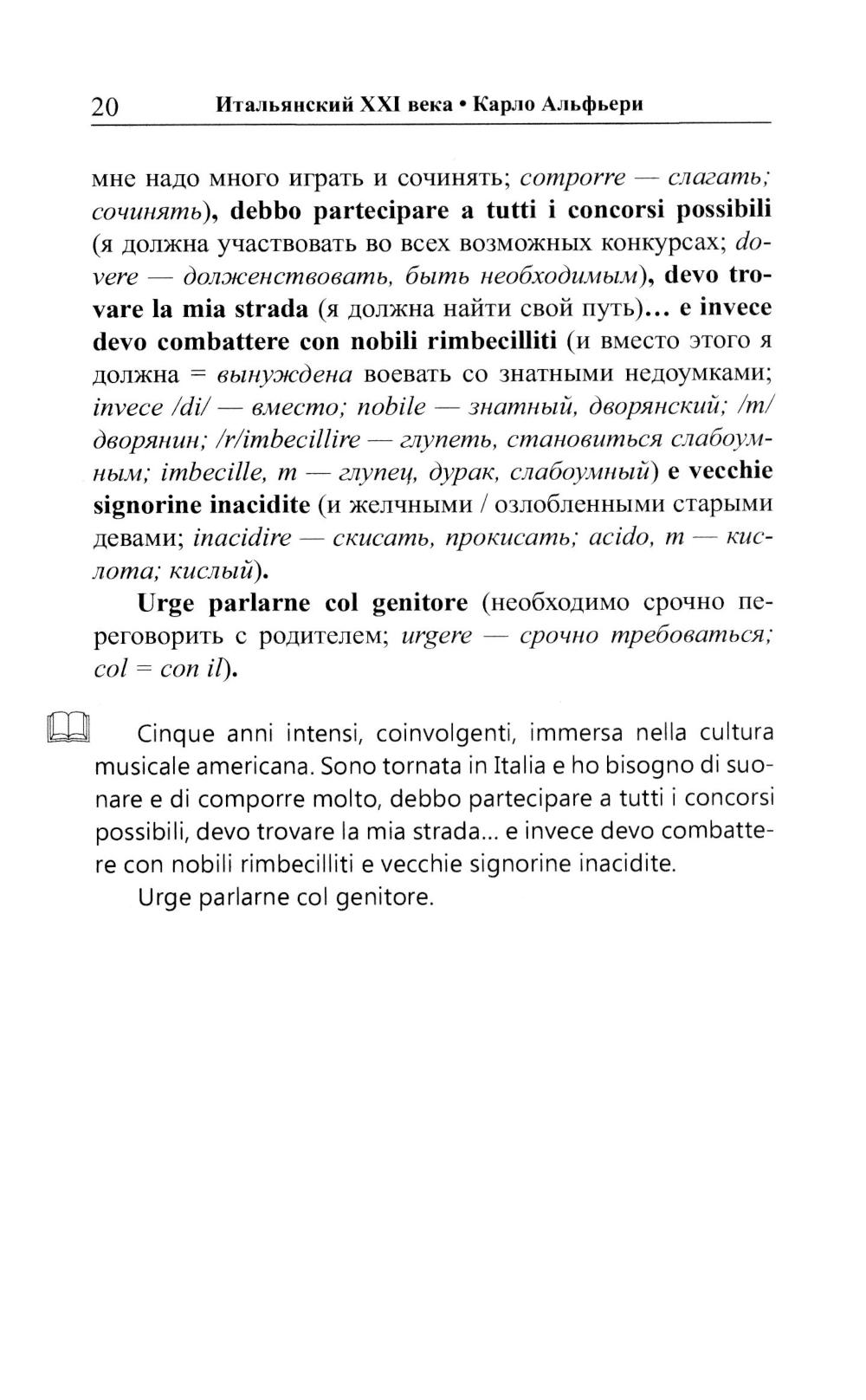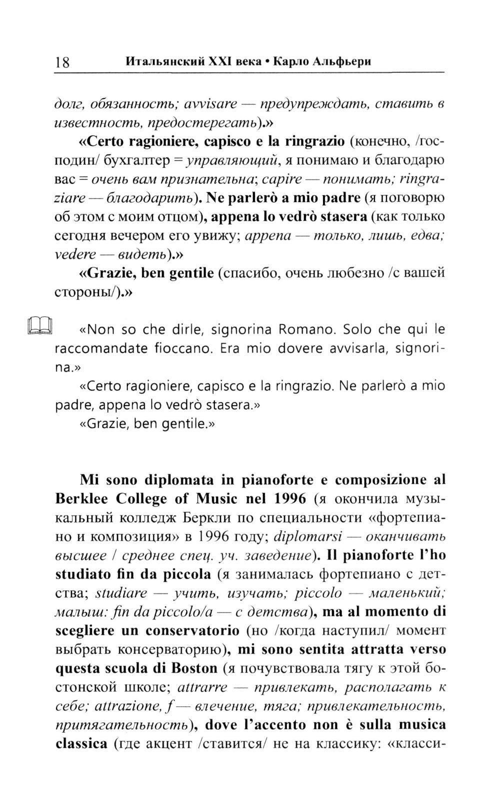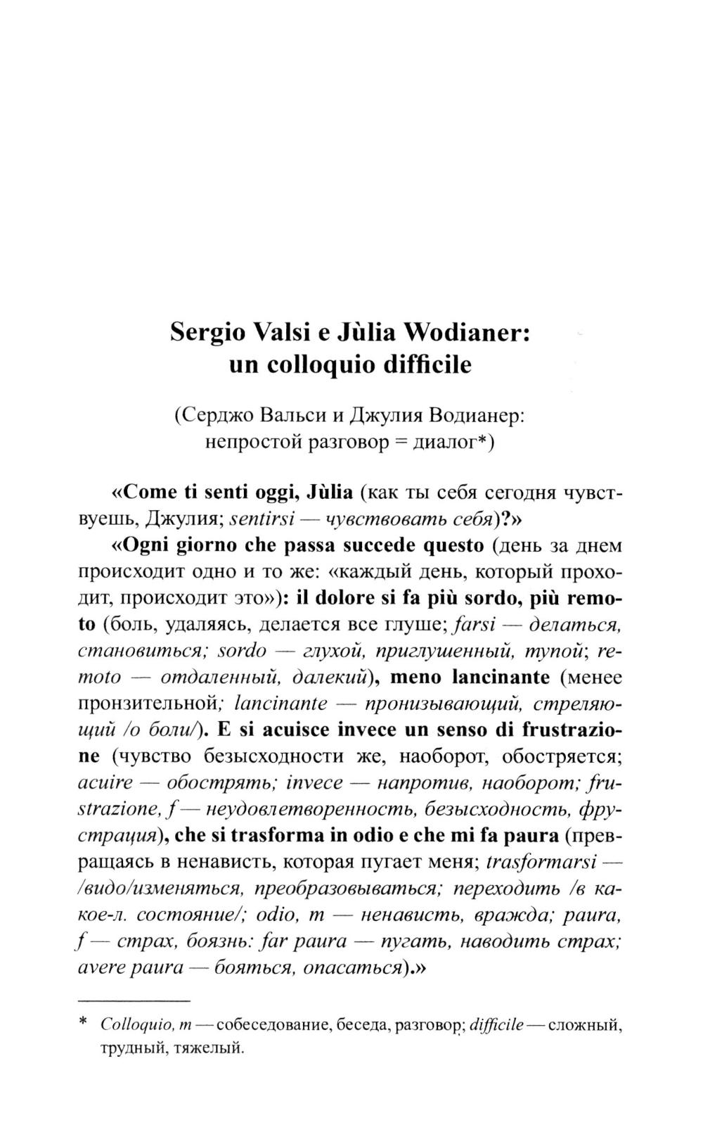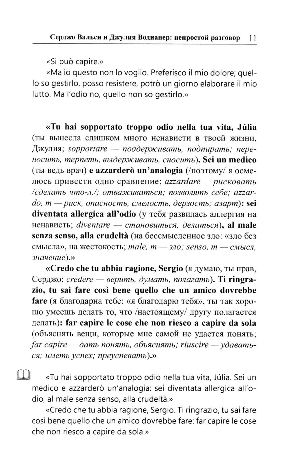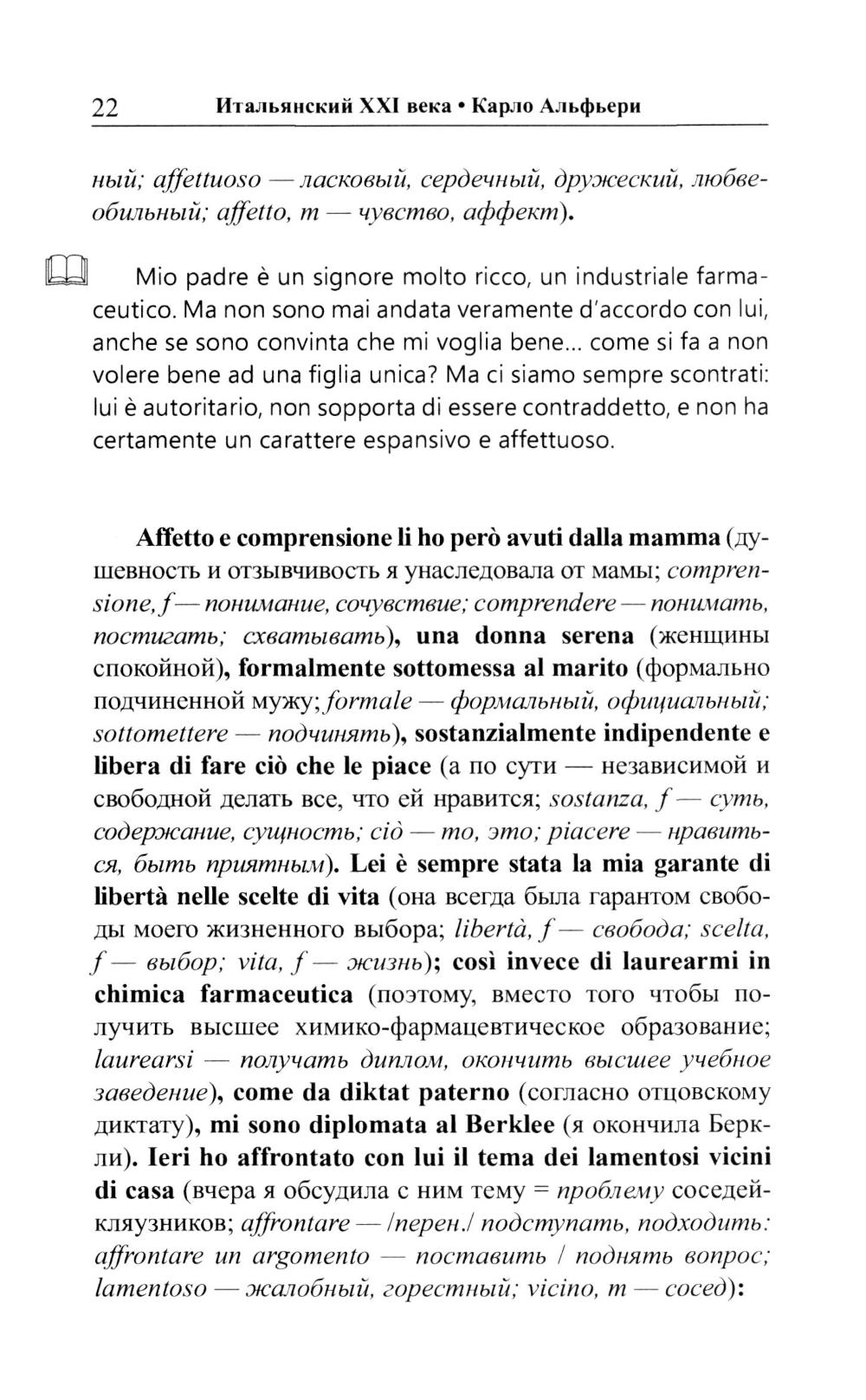 Покупая старый дом, будьте готовы к встрече с призраками прошлого, бродящими по его комнатам... О тайне, окутывающей заброшенное поместье, слышали многие, но беспощадную правду знала только она. И вот, спустя много лет, эта история вновь напомнила о себе, глубоко волнуя, заставляя сопереживать всех, кто с ней соприкоснулся, обретая новую жизнь, над которой время уже не властно... Роман известного итальянского писателя, уроженца Милана Карло Альфьери адаптирован в настоящем издании по методу Ильи Франка: снабжен дословным переводом на русский язык и необходимым лексико-грамматическим комментарием. Уникальность метода заключается в том, что запоминание слов и выражений происходит за счет их повторяемости, без заучивания и необходимости использовать словарь. Кроме того, читатель привыкает к логике итальянского языка, начинает его «чувствовать». Книги из серии «Итальянский XXI века» представляют собой новейшие произведения италоязычной литературы и являются неоценимым подспорьем в изучении «живого» современного итальянского языка.| Издательство | Восточная книга |