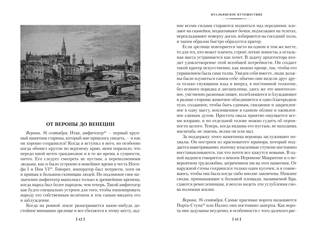 В 1786 г. тридцатисемилетний Иоганн Вольфганг Гёте отправился в Италию. Путешествовал он инкогнито, под именем купца Меллера, и посетил озеро Гарда, Верону, Виченцу, Венецию, Болонью, Рим и Альбанские горы, Неаполь и Сицилию. «Мы все - пилигримы, стремящиеся в Италию; с доверчивой радостью мы поклоняемся рассеянным костям мертвецов», - писал Гёте в Венеции. В 1788 г. поэт вернулся на родину, а в 1816-1817 гг. впервые был опубликован текст его «Итальянского путешествия». Будучи написано спустя многие годы после возвращения автора из поездки, сочинение Гёте отличалось от традиционных путевых заметок. Но, основанное на дневниках и письмах тех лет, «Итальянское путешествие» все же хранит свежесть впечатлений, дополненных зрелыми размышлениями и отшлифованных до подлинного литературного совершенства. Замечательный факт: Иосиф Бродский, составляя свой знаменитый список книг, который должен прочесть каждый, помимо «Фауста», включил в него еще одно сочинение Гёте - восхитительное «Итальянское путешествие».| Издательство | Азбука |