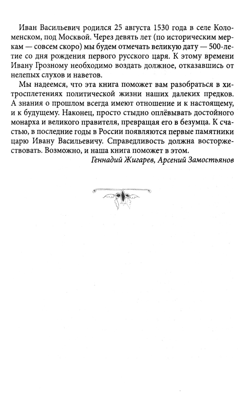 В истории нашей страны нет более спорной личности, чем первый русский царь. Его и проклинают, и прославляют. Между тем, Иван Грозный сыграл выдающуюся роль в истории нашей страны. Создание регулярной армии и мощной артиллерии, строительство городов, расширение границ царства, победа в противостоянии за Ордынское наследство - всему этому Россия обязана его полувековой эпохе. Историк и путешественник Геннадий Жигарев, создавший документальный фильм о первом русском царе, парирует аргументы противников, рассматривая Ивана Васильевича в контексте мировой политики. В этой книге есть ответы на все главные вопросы об Иване Грозном.