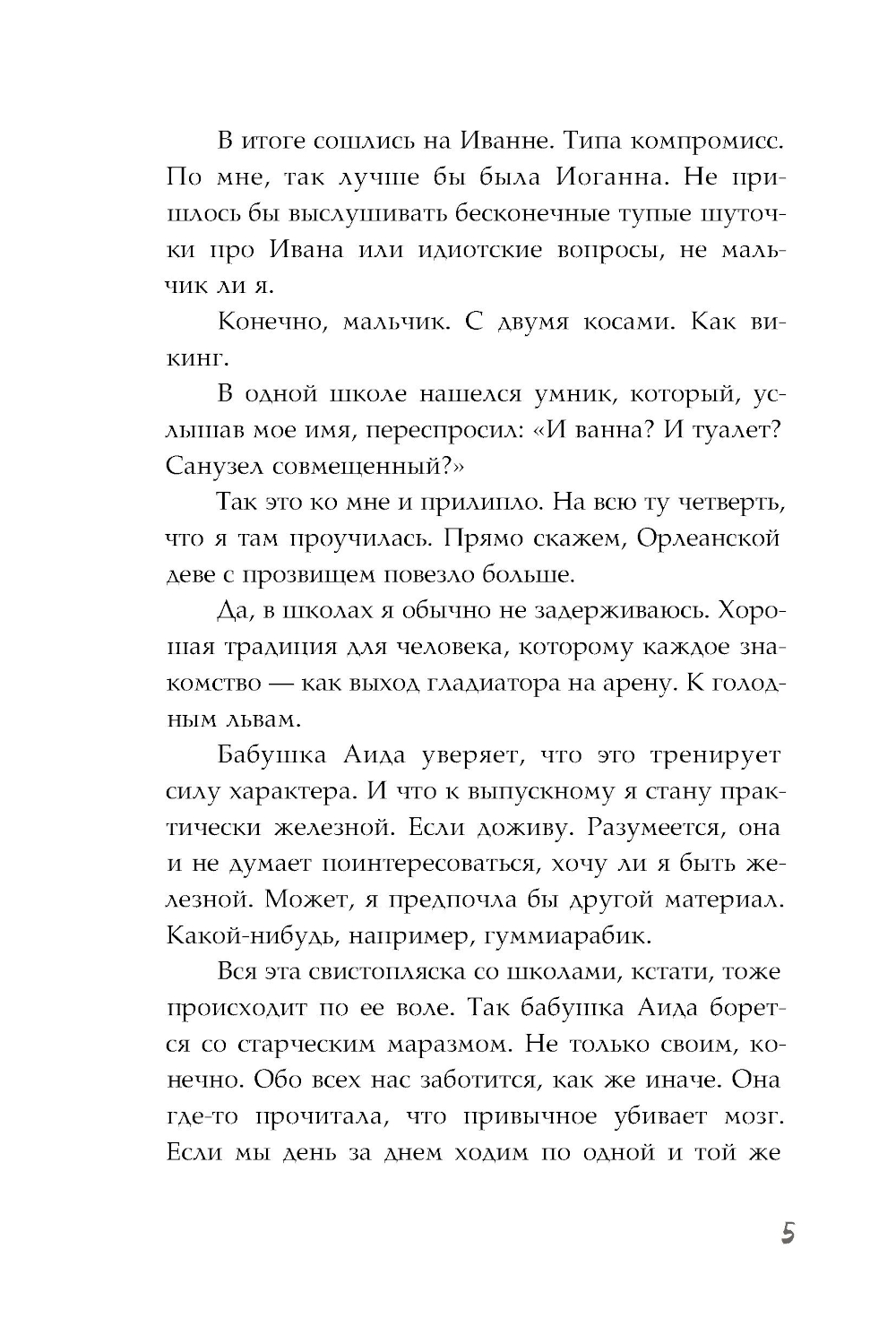 Семья Иванны постоянно меняет место жительства. Бабушка говорит, что это полезно для мышления, а с бабушкой спорить не принято. Поэтому Иванна вечно новенькая в школе. Очередное знакомство с классом, очередная порция дурацких шуточек про редкое имя... Как бы пригодились доспехи, как у Жанны д'Арк, в честь которой ее назвали! И вот новый переезд. Новый город. Иванна гуляет, изучая окрестности, и находит настоящий сказочный замок: красный кирпич, башенки, флюгера, витражное окошко на чердаке. А в замке - добрый Граф и настоящий заколдованный принц Ян. Похоже на сон? Да, реальность несколько прозаичнее. Но Иванна делает всё возможное, чтобы стать в этой сказке настоящим героем.| Издательство | Пять четвертей |