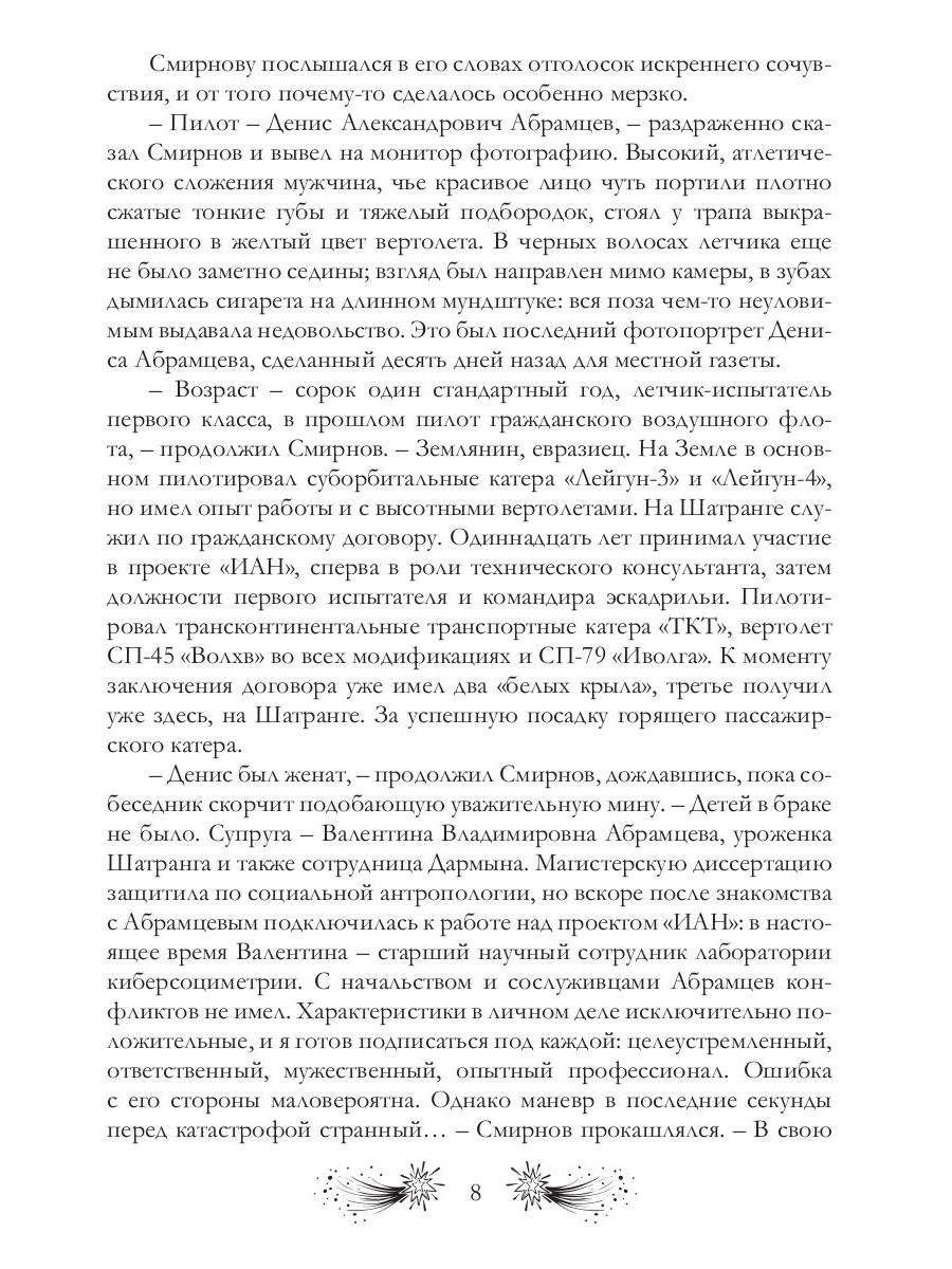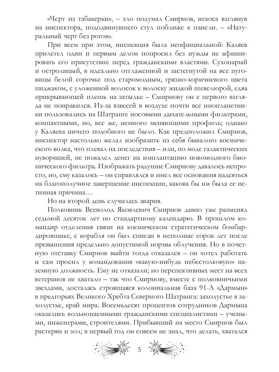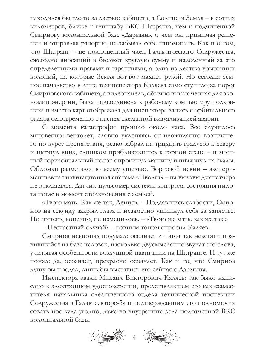 Еще до начала эры космической экспансии человечество на Земле отказалось от дальнейшего развития разумных машин в пользу простой имитации разума, достаточной для выполнения практических задач. Но столетия спустя на отдаленной планете Шатранг вопрос о создании подлинного машинного разума встает вновь. Командующий колониальной базой полковник Смирнов видит в разработке ИскИнов, способных использовать феномен «темпоральной интуиции», единственный шанс разрешить технологический кризис. Но происходит катастрофа: во время выполнения рейса к одной из горных научных станций терпит крушение и погибает лучший летчик-испытатель Дармына Денис Абрамцев. Авария выглядит необъяснимой и ставит будущее проекта под сомнение...| Издательство | Т8 RUGRAM |