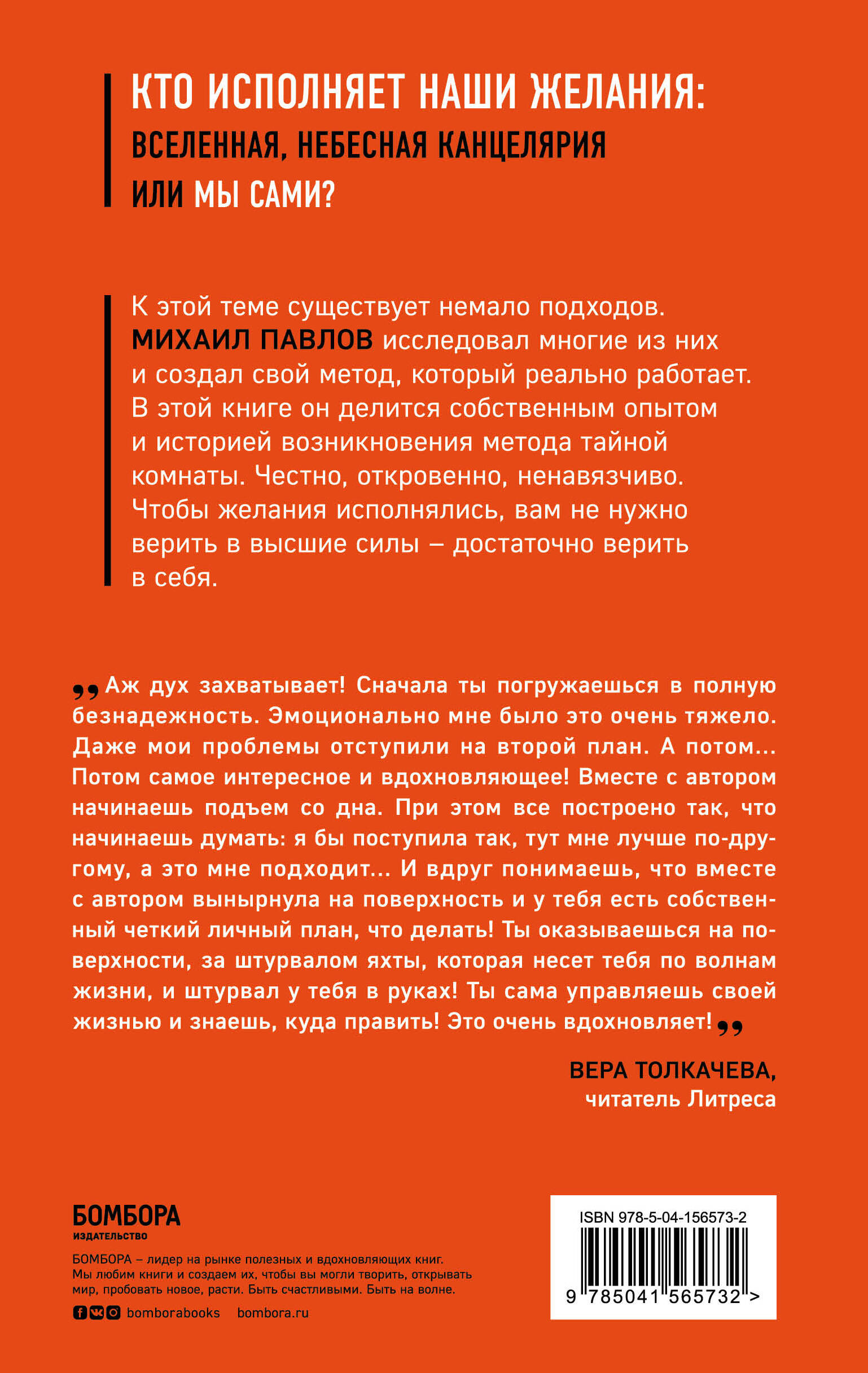 Кто исполняет наши желания: Вселенная, небесная канцелярия, или мы сами? К этому вопросу существует немало подходов. Михаил Павлов исследовал многие из них и создал свой метод, который реально работает. В этой книге он делится собственным опытом и историей возникновения Метода тайной комнаты. Честно, откровенно, ненавязчиво. Чтобы желания исполнялись, вам не нужно верить в Высшие силы - достаточно верить в себя.| Издательство | Эксмо |