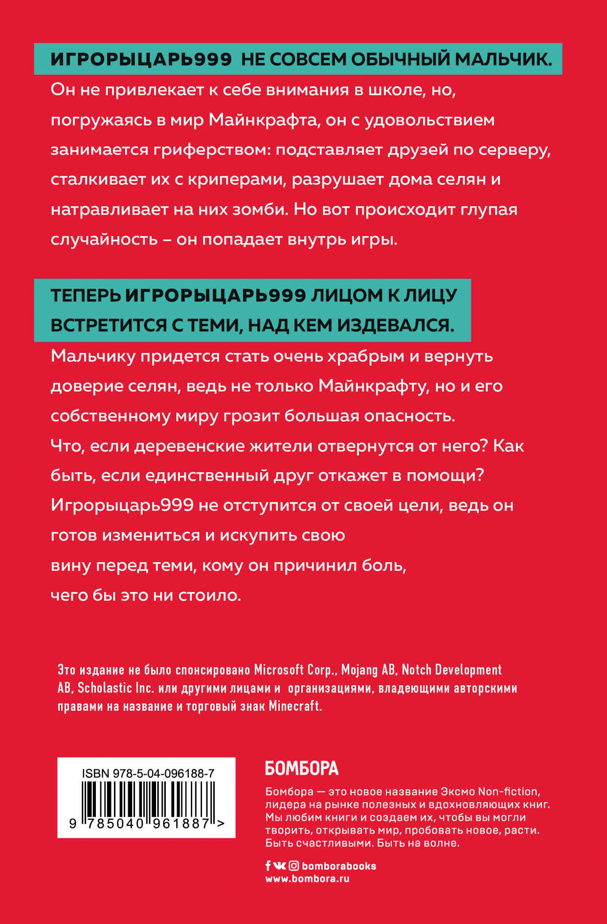 Игрорыцарь999 попадает в Майнкрафт, а там - зомби, криперы, пауки, очень-очень страшно и никого, кто бы пришёл на помощь. Да никто и не захотел бы, наверное, ведь Игрорыцарь999 не щадил своих "друзей": он подставлял всех вокруг, разрушал дома селян, натравливал на деревни зомби. И именно ему теперь предстоит спасти мир - виртуальный и реальный. Чтобы сделать это, ему придётся измениться, признать свои ошибки и взять на себя ответственность за чужие жизни.