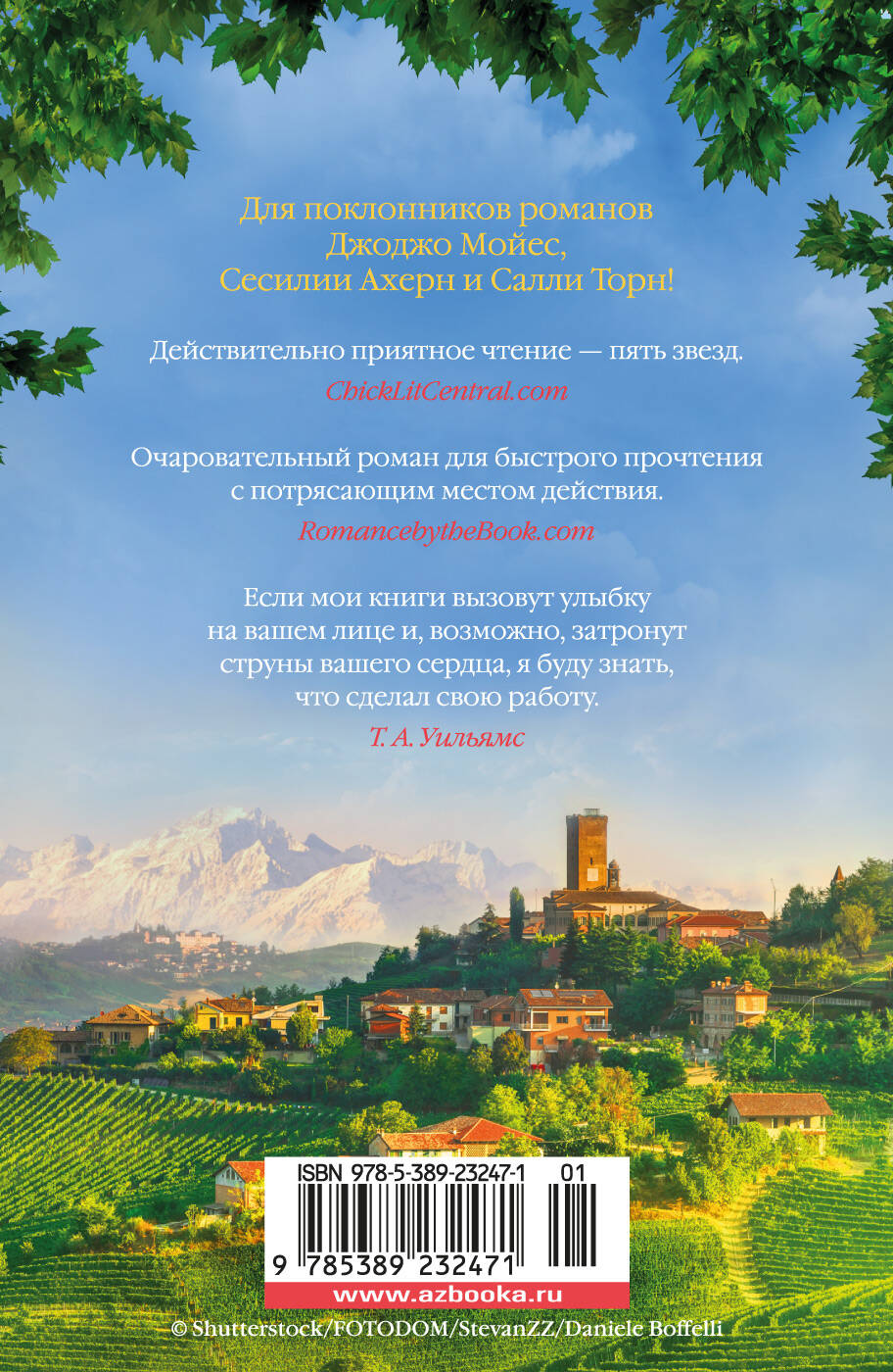 Вернувшись из командировки, Луиза Роудс застает парня, с которым намеревалась провести остаток дней, в постели с другой. Луизе хочется сбежать и спрятаться ото всех - и новая рабочая поездка оказывается как нельзя кстати. Нужно вернуть к жизни гостиницу, затерянную в сельской местности Пьемонта, и Луиза дает себе зарок: только работа, никаких мыслей о мужчинах. Однако выполнить обещание не так-то просто. Перед отъездом ее приглашает на ужин начальник, и за столом они обсуждают не только деловые вопросы. Кроме того, в Италии Луиза встречает Паоло, который когда-то был ее первой любовью и который вроде не против вернуть былое. Но сложнее всего не думать о затворнике Вито, прежнем владельце гостиницы… Сможет ли Луиза в этом уединенном уголке не только восстановить душевное равновесие, но и обрести надежду на новые чувства? Впервые на русском!| Издательство | Азбука-Аттикус Издат.группа ООО |