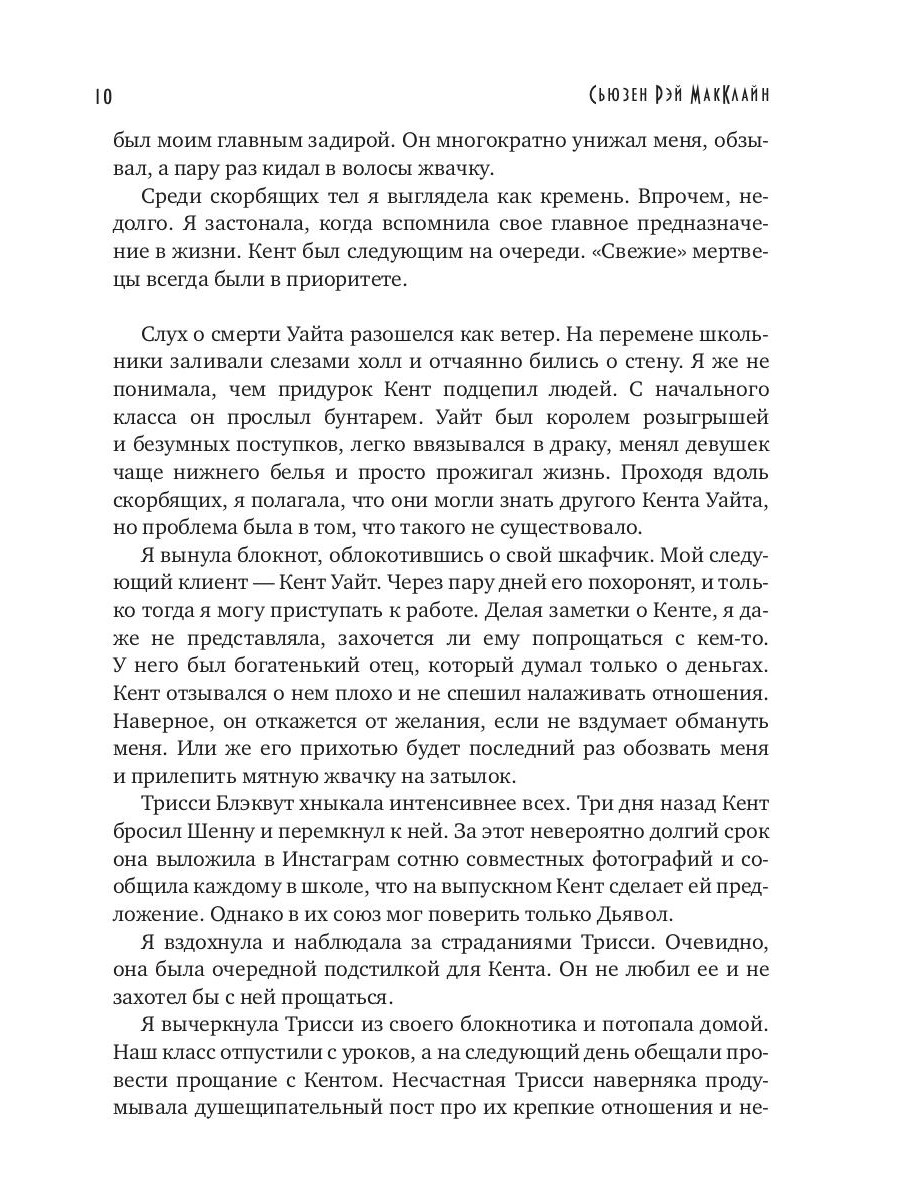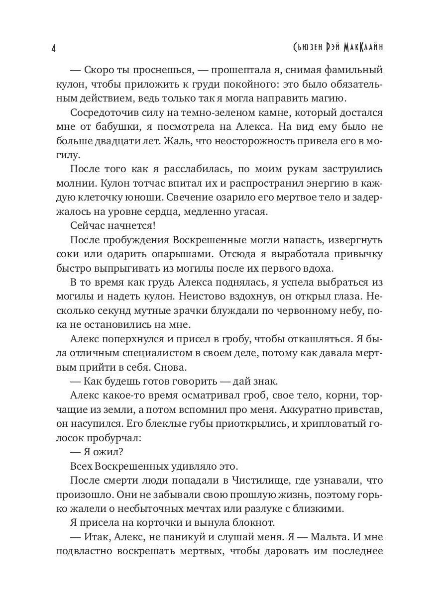 Считаете ли вы, что у мертвых должен быть шанс проститься с близкими? Сходить последний раз в кино или полакомиться любимым десертом? Работа Мальты Шеннон заключается в том, чтобы даровать усопшим последнее желание, ведь смерть отобрала у них все. Но не Мальта... Днем она учится в старшей школе, а ночи коротает среди свежих могил, воскрешая мертвецов. Ее не пугают безобразные тела и кладбищенские тайны, напротив - свое одиночество девушка любит разделять с покойниками. Однако жизнь Мальты меняется в одночасье, когда умирает ее главный школьный задира - Кент Уайт. Преисполненная долгом, девушка идет на могилу одноклассника, но неожиданно для себя сталкивается с его братом - Джозеффом Уайтом. Кто же он? И что забыл на кладбище в такое время? Самое главное - кто такие Уайты?..| Издательство | Т8 RUGRAM |