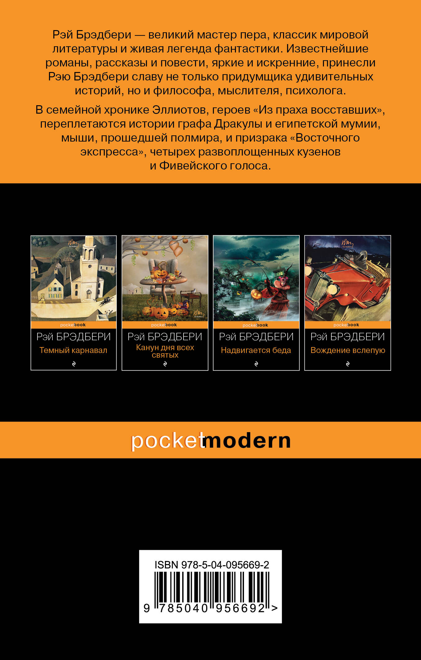 «Из праха восставшие» - роман, истоки которого - в рассказах «Апрельское колдовство», «Дядюшка Эйнар» и «Странница», на которых выросло не одно поколение советских, а потом и российских читателей. Эта книга писалась полвека, отражая все важнейшие события XX столетия, но отражая так, как это мог сделать один только Брэдбери - через детство. В семейной хронике Эллиотов, героев «Из праха восставших», переплетаются истории графа Дракулы и египетской мумии, мыши, прошедшей полмира, и призрака «Восточного экспресса», четырех развоплощенных кузенов и Фивейского голоса.| Издательство | ООО "Издательство "Эксмо" |