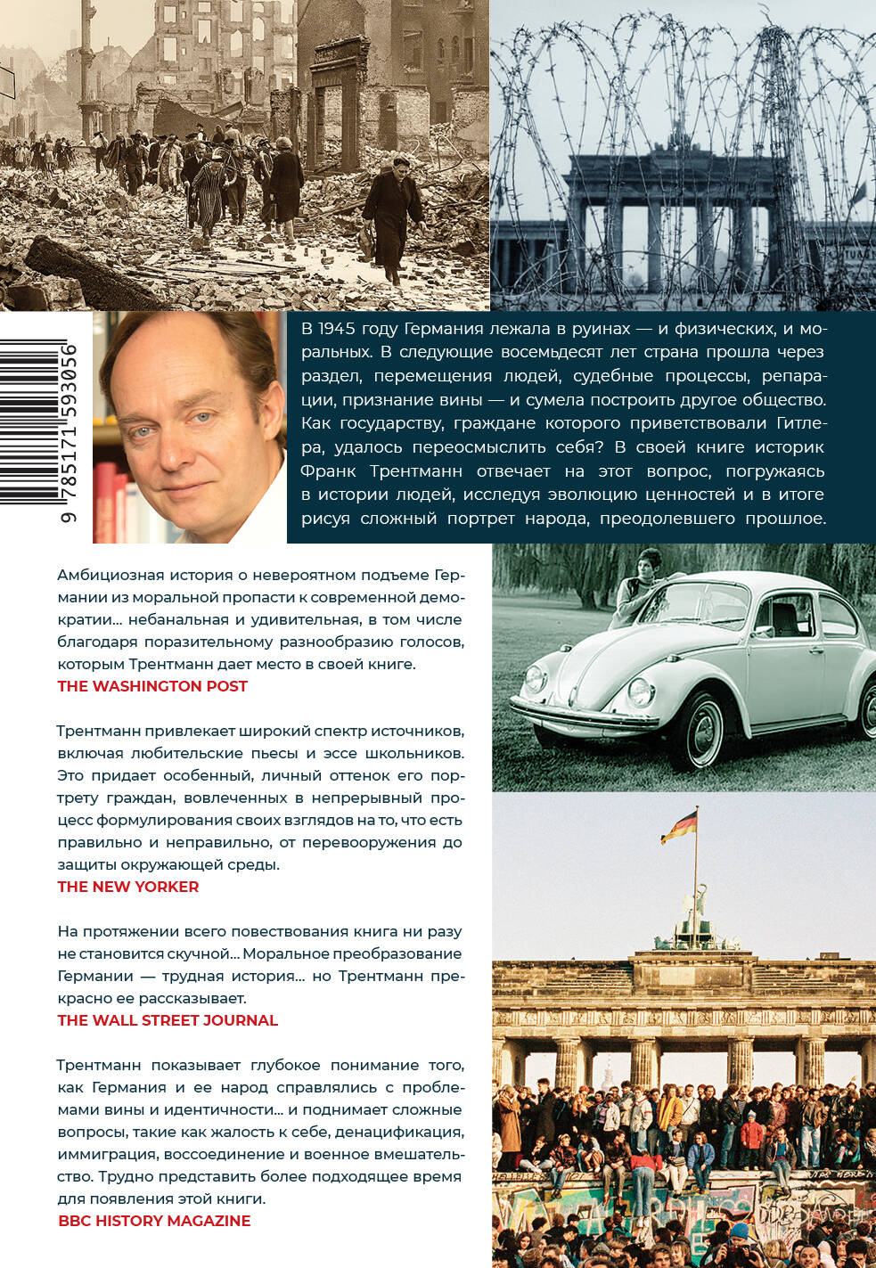 - Монументальный труд, прослеживающий путь Германии от руин нацизма до одной из самых стабильных демократий Европы. - Трентманн анализирует сложные политические, экономические и социальные процессы, сопровождавшие послевоенное восстановление страны. - В книге объясняется, как историческая вина и попытки ее искупить сформировали современное национальное самосознание немцев. - Автор аргументированно доказывает, что моральное преображение Германии - неоднозначный процесс, породивший целый ряд проблем в немецком обществе. - Обязательное чтение для всех, кто хочет глубже понять историю Германии и современное положение страны на мировой арене.| Издательство | Издательство "АСТ" |