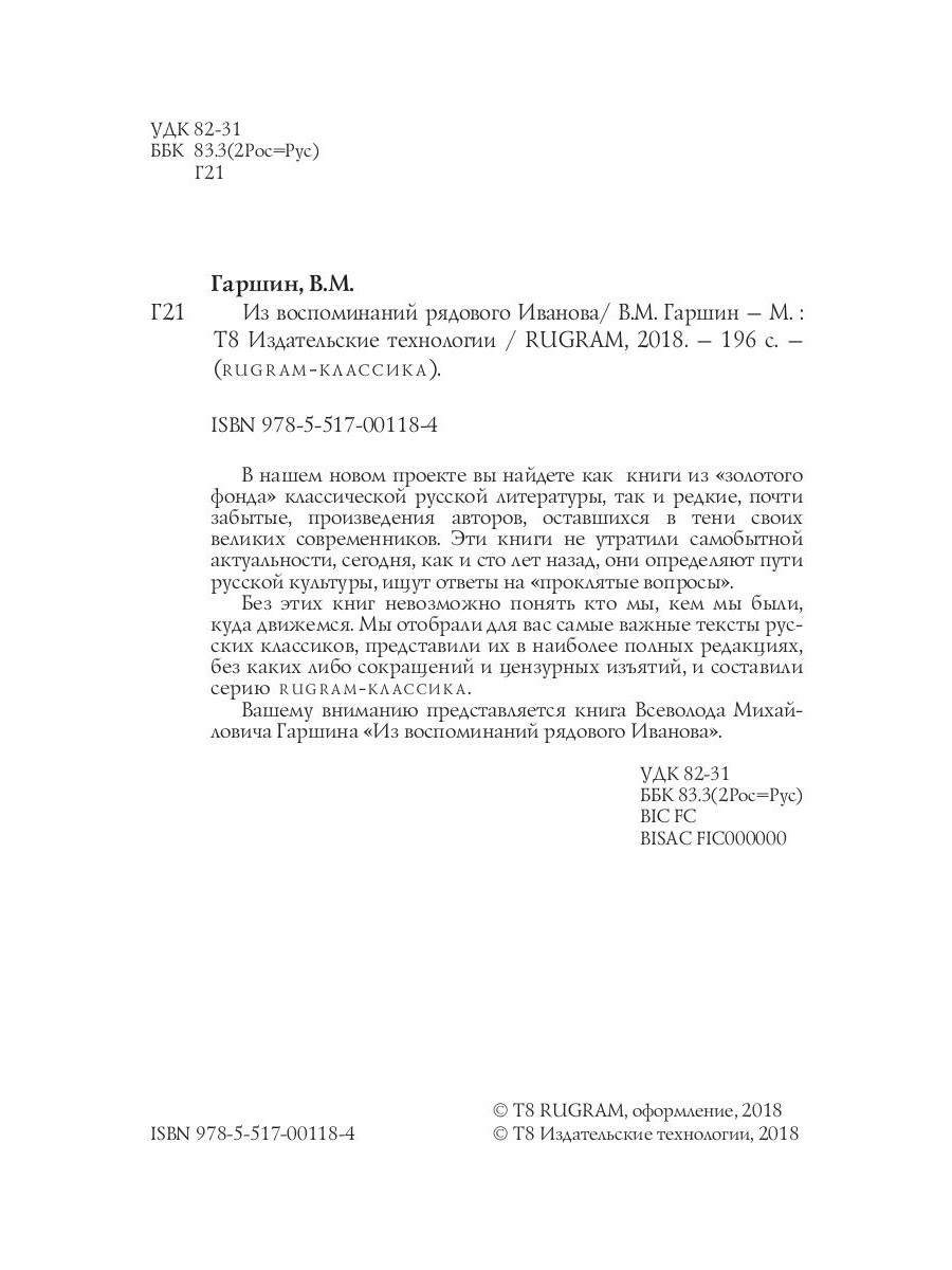 Вашему вниманию представляется книга Всеволода Михайловича Гаршина «Из воспоминаний рядового Иванова».