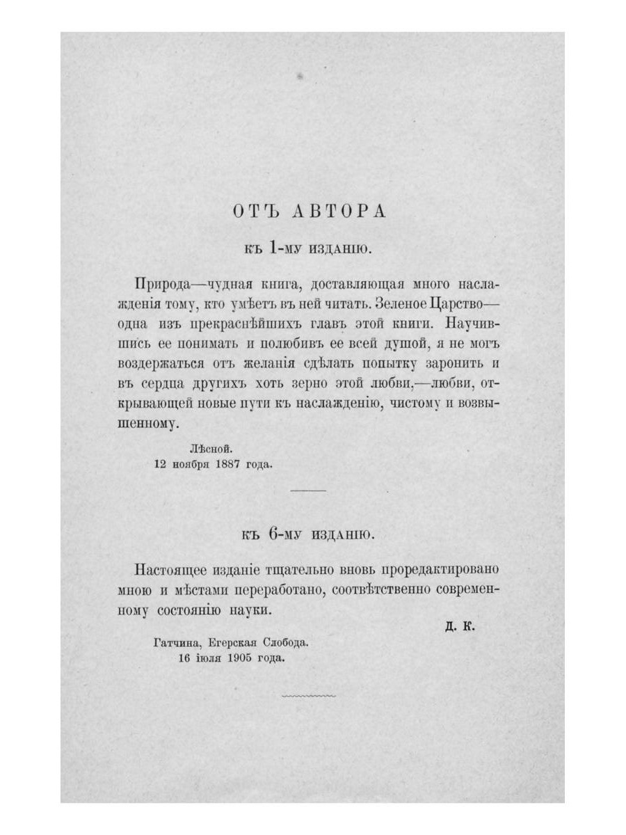 Природа - чудная книга, доставляющая много наслаждения тому, кто умеет в ней читать. Зеленое Царство - одна из прекраснейших глав этой книги. Научившись ее понимать и полюбив ее всей душой, я не мог воздержаться от желания сделать попытку заронить и в сердца других хоть зерно этой любви.