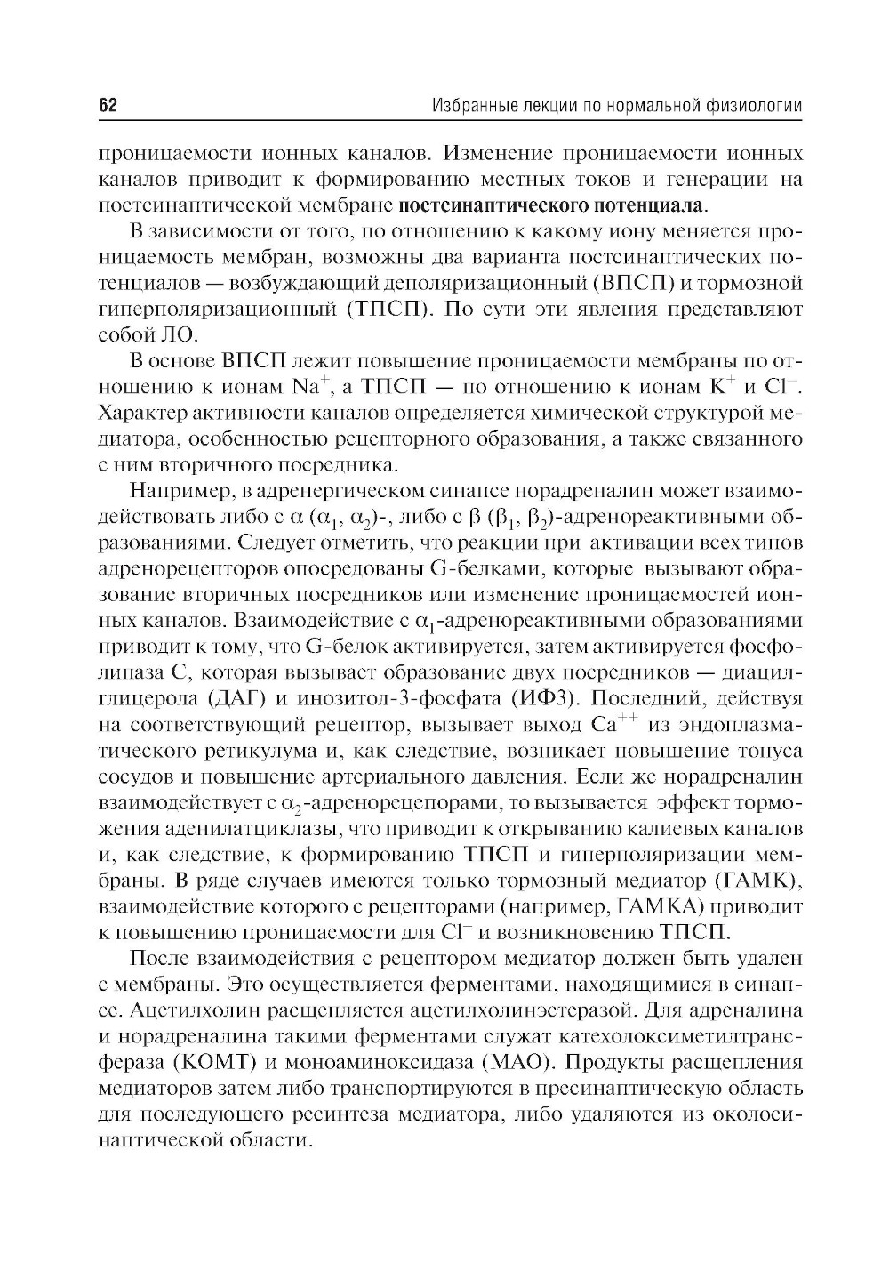 Данные лекции подготовлены в соответствии с государственным образовательным стандартом высшего профессионального образования по специальности 31.05.01 «Лечебное дело» по основным разделам дисциплины «Нормальная физиология», изучаемой на втором курсе медицинских вузов. В лекциях освещены современные представления о физиологии - начиная с функционирования отдельных клеток и заканчивая работой организма в целом. The present lectures are prepared in accordance with State Educational Standard for Higher Professional Education on specialty 31.05.01 «General Medicine», and contain material on basic sections of discipline «Normal Physiology» studied by the second year students of higher medical educational institutions. The lectures cover modern concepts of physiology from the functioning of individual cells to the work of the whole organism.| Издательство | ГЭОТАР-Медиа |