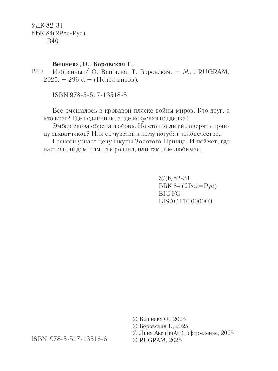 Все смешалось в кровавой пляске войны миров. Кто друг, а кто враг? Где подлинник, а где искусная подделка? Эмбер снова обрела любовь. Но стоило ли ей доверять принцу захватчиков? Или ее чувства к нему погубят человечество… Грейсон узнает цену шкуры Золотого Принца. И поймет, где настоящий дом: там, где родина, или там, где любимая.| Издательство | Т8 RUGRAM |