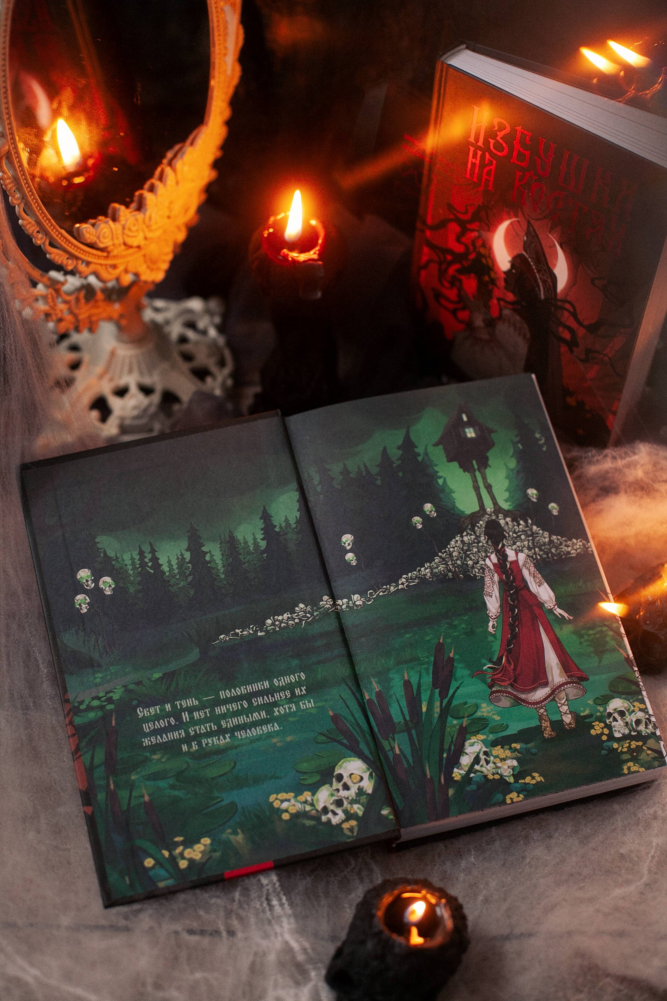 Ретеллинг про Василису, которая отправилась в лес к Бабе-Яге Мрачная, чарующая сказка, наполненная шумом ветра и шелестом листьев Обложка от Iren Horrors, иллюстрации на форзацах и в блоке - centaurea| Издательство | МАНН, ИВАНОВ И ФЕРБЕР ООО |