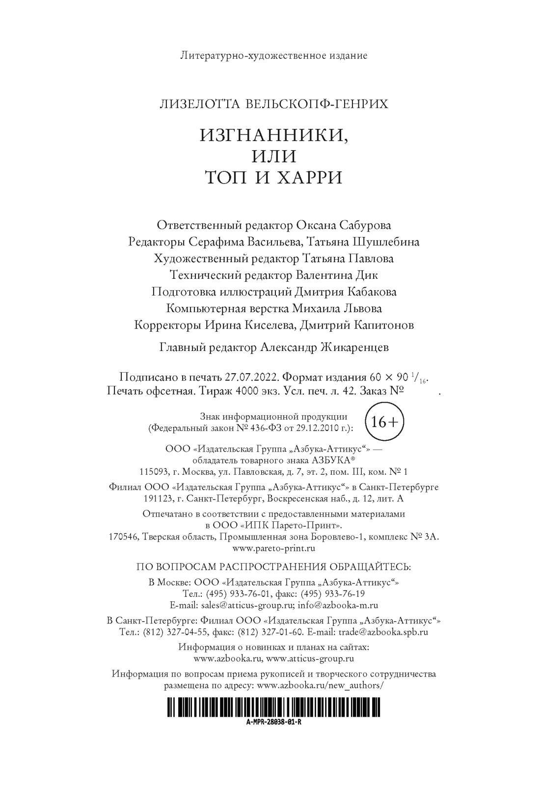 Романы из цикла «Сыновья Большой Медведицы» Лизелотты Вельскопф-Генрих стоят в одном ряду с приключенческими книгами об индейцах Северной Америки Фенимора Купера и Майн Рида. Произведения немецкой писательницы стали классикой юношеской литературы, многократно переиздавались, были переведены на десятки языков и экранизированы. Начало циклу положил одноименный роман, который вышел в 1951 году, и его автор был удостоен престижной литературной премии. В последующие годы Вельскопф-Генрих не оставляла работы над книгой и существенно ее расширила. Первое полное издание увидело свет в трех томах в начале 1960-х (впоследствии цикл выходил также в виде шеститомника). За деятельную поддержку североамериканских индейцев племенной союз оглала присудил писательнице почетный титул Лакота-Ташина, Защитница Лакота. Вниманию читателей предлагается второй том трилогии «Изгнанники, или Топ и Харри». В книге повествуется о новых испытаниях, выпавших на долю Маттотаупы, вождя индейского племени охотников, и Харки, который вслед за отцом покинул родное стойбище и разделил с вождем горькую участь изгнанника... Роман представлен в новом полном переводе Т. Набатниковой и Р. Эйвадиса (ранее «Сыновья Большой Медведицы» на русском языке публиковались в сокращенном виде); книга включает также прекрасные иллюстрации П. Парамонова.| Издательство | Азбука |