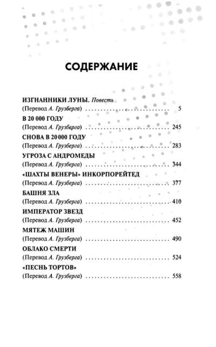 Издательство «Престиж Бук» начинает выпуск произведений американского писателя Артура Лео Загата (1896-1949), автора более 500 рассказов, повестей и романов. Все произведения автора характеризуются динамичным сюжетом и привлекают внимание читателя неожиданными поворотами повествования. Одинаково интересно читаются и детективные, и научно-фантастические произведения. В данный том вошли повесть «Изгнанники Луны» и ряд других повестей и рассказов. Все произведения автора на русском языке издаются впервые.| Издательство | Престиж Бук |