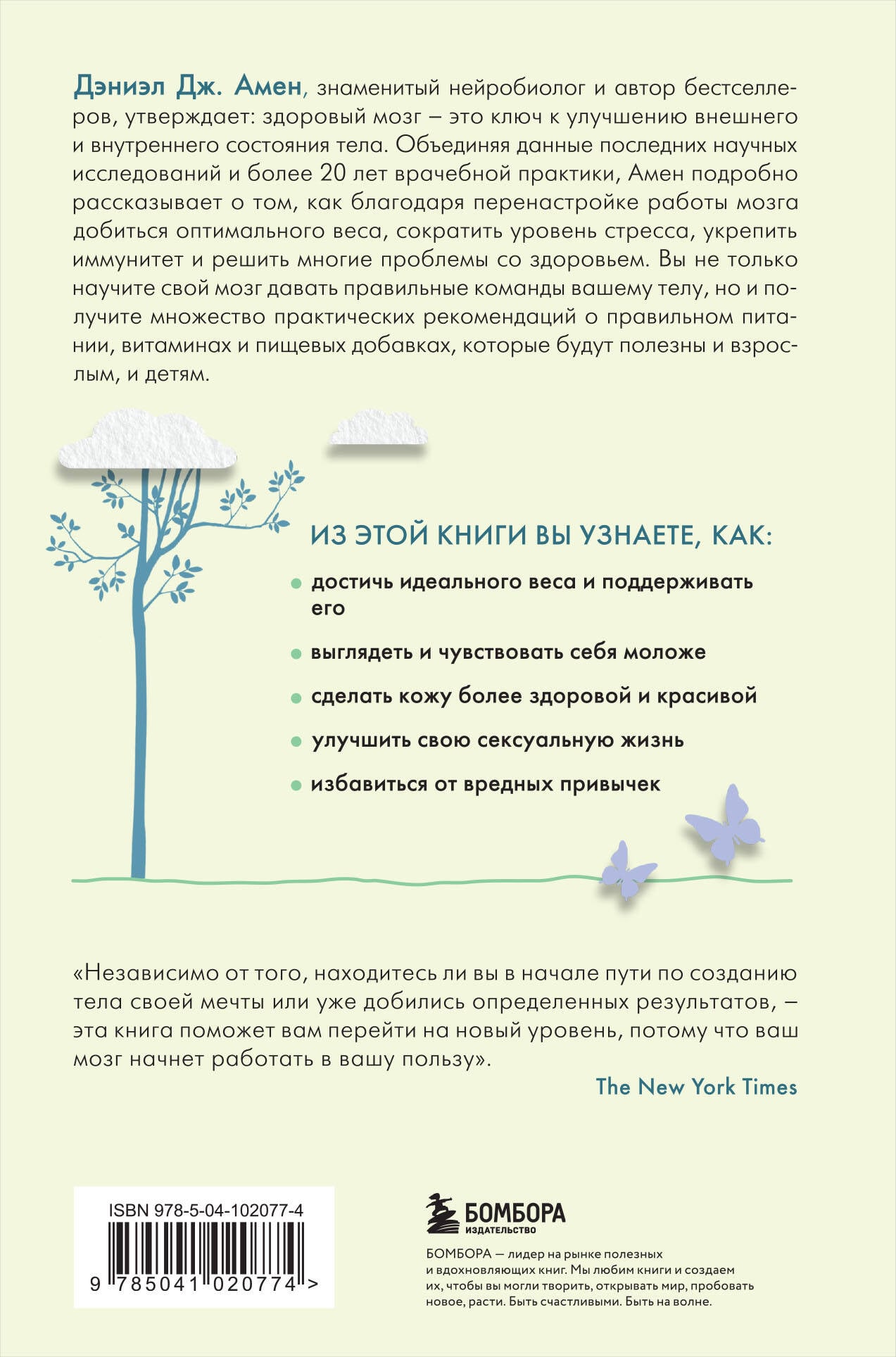 Дэниэл Дж. Амен, знаменитый нейробиолог и автор бестселлеров, утверждает: здоровый мозг - это ключ к улучшению внешнего и внутреннего состояния тела. Объединяя данные последних научных исследований и более 20 лет врачебной практики, Амен подробно рассказывает о том, как благодаря перенастройке работы мозга добиться оптимального веса, сократить уровень стресса, укрепить иммунитет и решить многие проблемы со здоровьем. Вы не только научите свой мозг давать правильные команды вашему телу, но и получите множество практических рекомендаций о правильном питании, витаминах и пищевых добавках, которые будут полезны и взрослым, и детям.| Издательство | Эксмо |