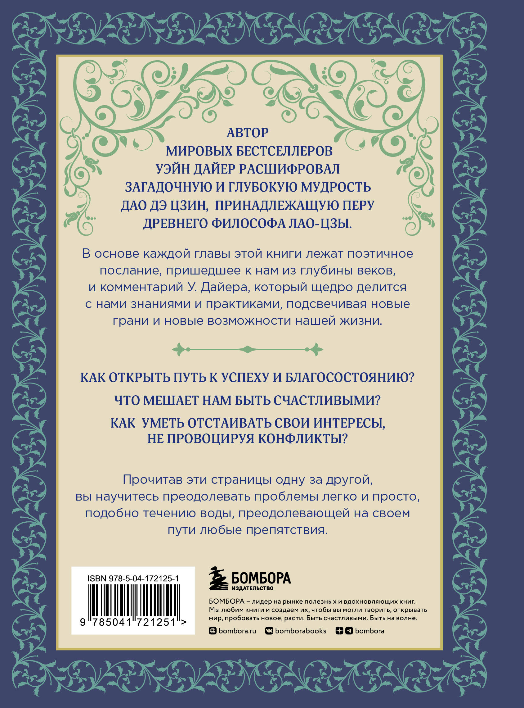 Автор мировых бестселлеров Уэйн Дайер расшифровал загадочную и глубокую мудрость Дао Дэ Цзин, принадлежащую перу древнего философа Лао-Цзы. Прочитав эти страницы одну за другой, вы научитесь преодолевать проблемы легко и просто, подобно течению воды, преодолевающей на своем пути любые препятствия. В основе каждой главы этой книги лежит поэтичное послание, пришедшее к нам из глубины веков. И комментарий У. Дайера, который щедро делится с нами знаниями и практиками, подсвечивая новые грани и новые возможности нашей жизни. - Как открыть путь к успеху и благосостоянию? - Что мешает нам быть счастливыми? - Как уметь отстаивать свои интересы, не провоцируя конфликты? Вам действительно стоит попробовать привести свои мысли в гармонию с ДАО « вселенским законом, управляющим Космосом, потому что именно это поможет сделать вашу жизнь более осмысленной, наполненной и нормальной. Эта книга в роскошном подарочном оформлении с золотой фольгой на обложке и корешке станет настоящим украшением вашей библиотеки.