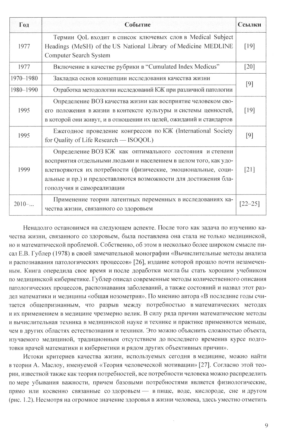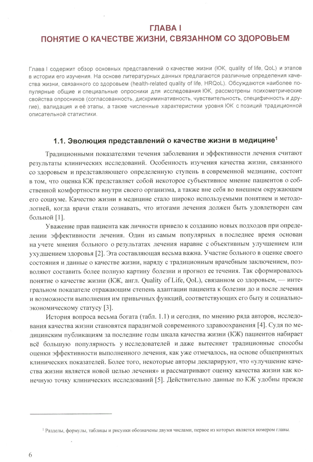 Глава I содержит обзор основных представлений о КЖ, информацию об этапах в истории изучения КЖ, рассматриваются наиболее популярные общие и специальные анкеты-опросники для исследования этого понятия, основные психометрические свойства и параметры валидации опросников, а также традиционные методы измерения численных мер уровня КЖ.