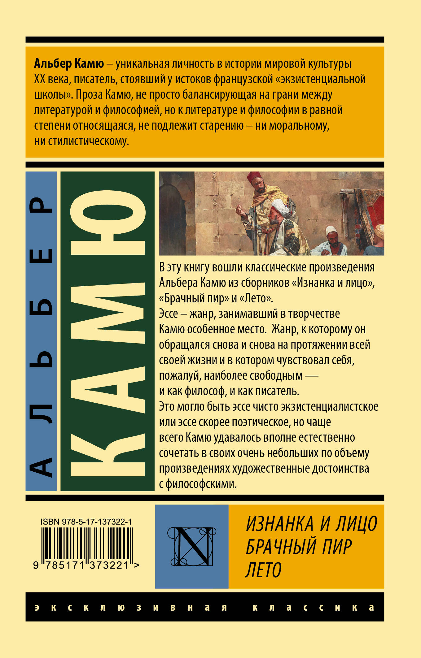 В эту книгу вошли классические произведения Альбера Камю из сборников "Изнанка и лицо", "Брачный пир" и "Лето". Эссе - жанр, занимавший в творчестве Камю особенное место. Жанр, к которому он обращался снова и снова на протяжении всей своей жизни и в котором чувствовал себя, пожалуй, наиболее свободным - и как философ, и как писатель. Это могло быть эссе чисто экзистенциалистское или эссе скорее поэтическое, но чаще всего Камю удавалось вполне естественно сочетать в своих очень небольших по объему произведениях художественные достоинства с философскими.| Издательство | АСТ |