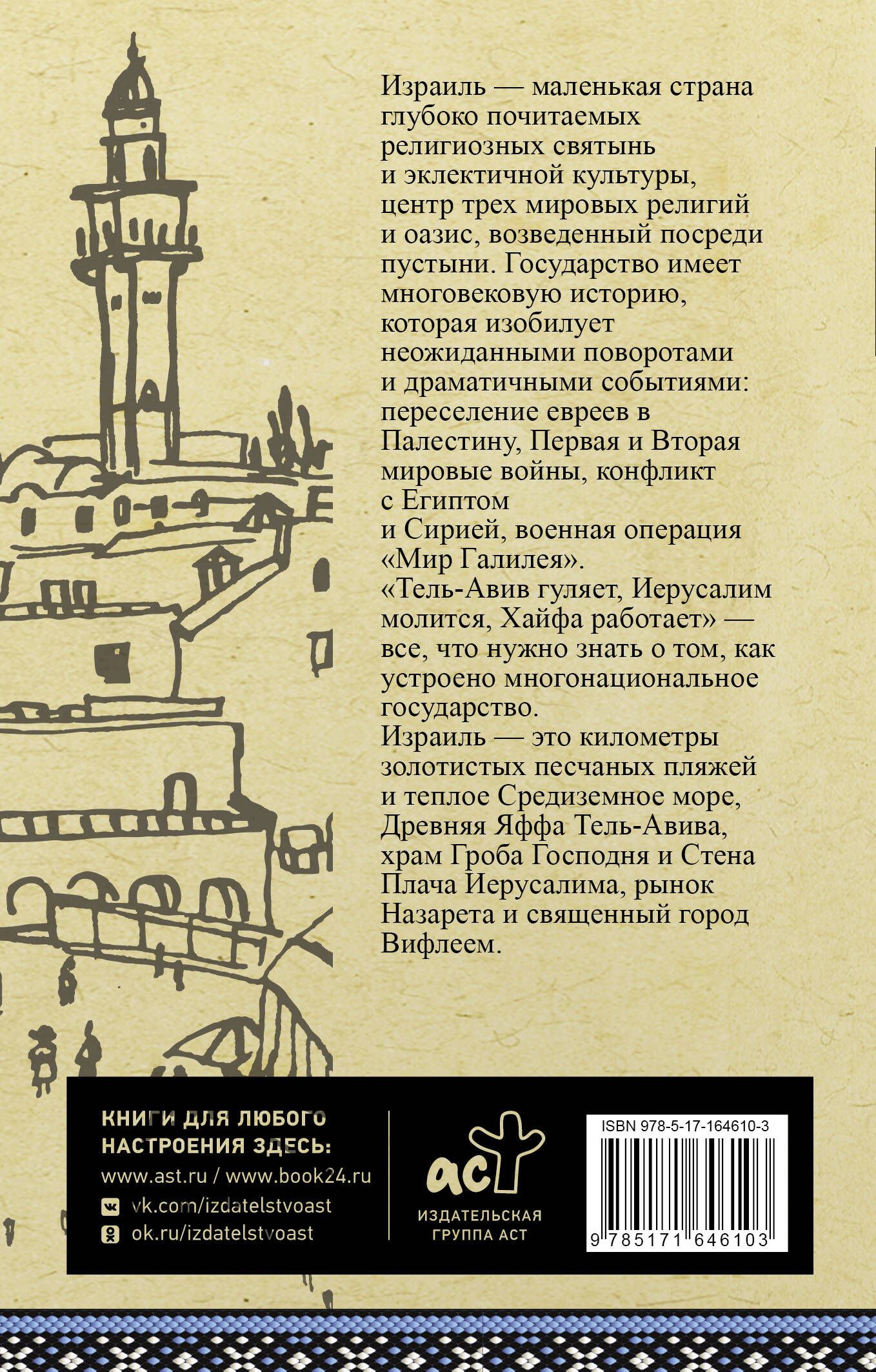 Израиль - маленькая страна глубоко почитаемых религиозных святынь и эклектичной культуры, центр трех мировых религий и оазис, возведенный посреди пустыни. Государство имеет многовековую историю, которая изобилует неожиданными поворотами и драматичными событиями: переселение евреев в Палестину, Первая и Вторая мировая война, конфликт с Египтом и Сирией, военная операция "Мир Галилея". "Тель-Авив гуляет, Иерусалим молится, Хайфа работает" - все, что нужно знать о том, как устроено многонациональное государство. Израиль - это километры золотистых песчаных пляжей и теплое Средиземное море, Древняя Яффа Тель-Авива, храм Гроба Господня и Стена Плача Иерусалима, рынок Назарета и священный город Вифлеем.| Издательство | Издательство "АСТ" |
