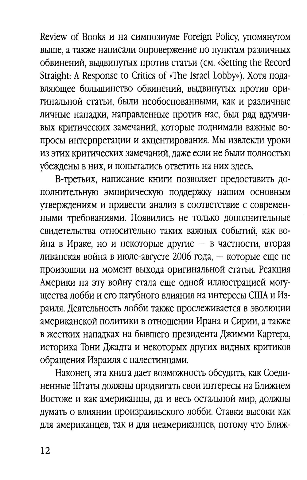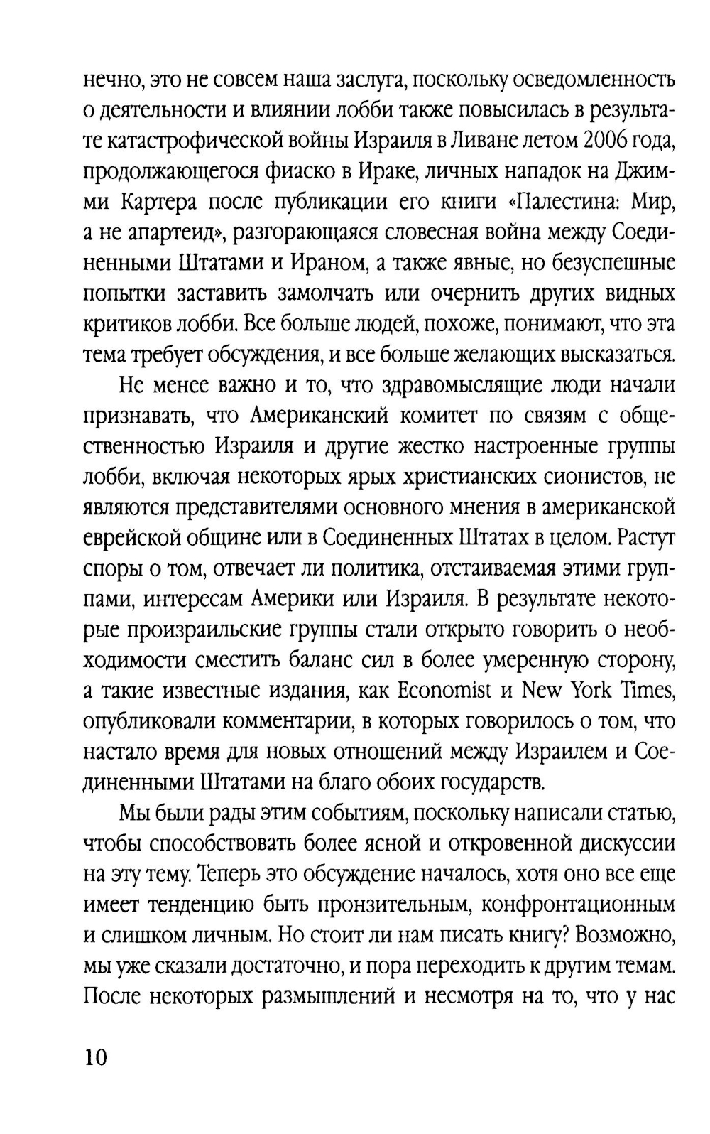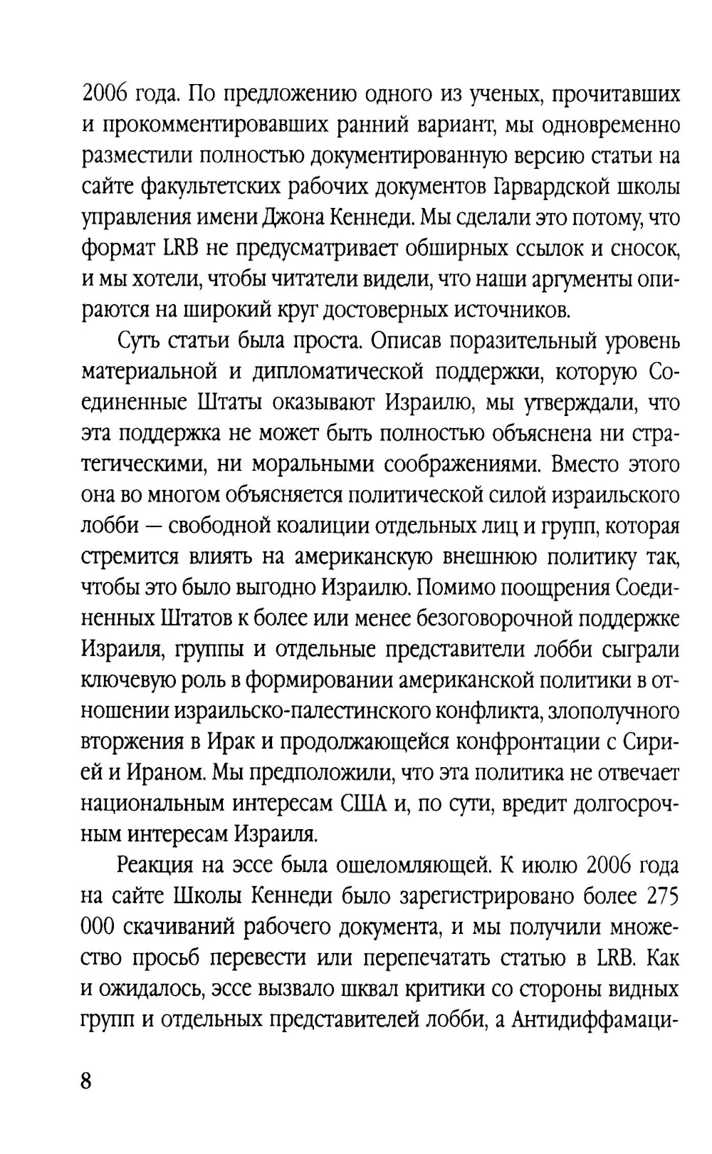 Израиль - это совершенно вопиющий пример того, как Америка десятилетиями полностью финансово содержит своего «союзника», при этом позволяя ему совершать военные преступления, проводить политику геноцида, иметь и совершенствовать химическое, биологическое и ядерное оружие. Соединённые Штаты даже в ущерб себе покрывают любые действия, совершаемые Израилем. Даже если они идут вразрез не только с моралью, но и с интересами самих Штатов. Казалось бы, как такая приземлённая и умеющая считать свои деньги страна, как США, страна, нигде не упускающая своей выгоды, - терпит подобное отношение от государства, площадь которого меньше Московской области? Миршаймер даёт ответ на этот вопрос: прочные нити израильского лобби давно оплели коррупционной сетью все политические институты Соединённых Штатов...| Издательство | Родина |