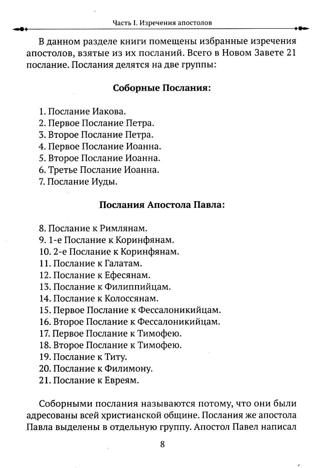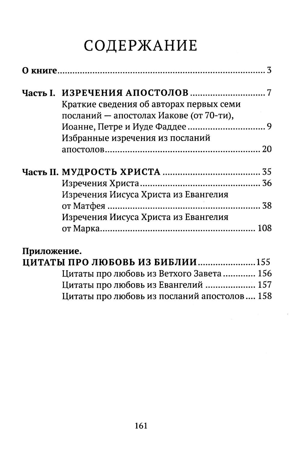 Данная книга состоит из двух частей. в первой представлены наиболее важные изречения апостолов из первых семи соборных посланий, во второй - изречения Иисуса Христа. взятые их двух канонических Евангелий - от Матфея и Марка. Прочитав эту книгу, вы прикоснётесь к неиссякаемому источнику вневременной мудрости, которую принесли в наш мир Иисус Христос и его ученики. Она подскажет вам, как найти выход из трудных жизненных ситуаций, укрепит в испытаниях, поможет обрести счастье, душевную гармонию и покой. В приложении помещены избранные цитаты из Библии о любви.| Издательство | Изд. Книга |