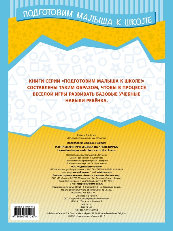 Книги серии "Подготовим малыша к школе!" составлены таким образом, чтобы в процессе весёлой игры развивать базовые учебные навыки ребёнка.| Автор/составитель | Волченко Юлия Сергеевна |