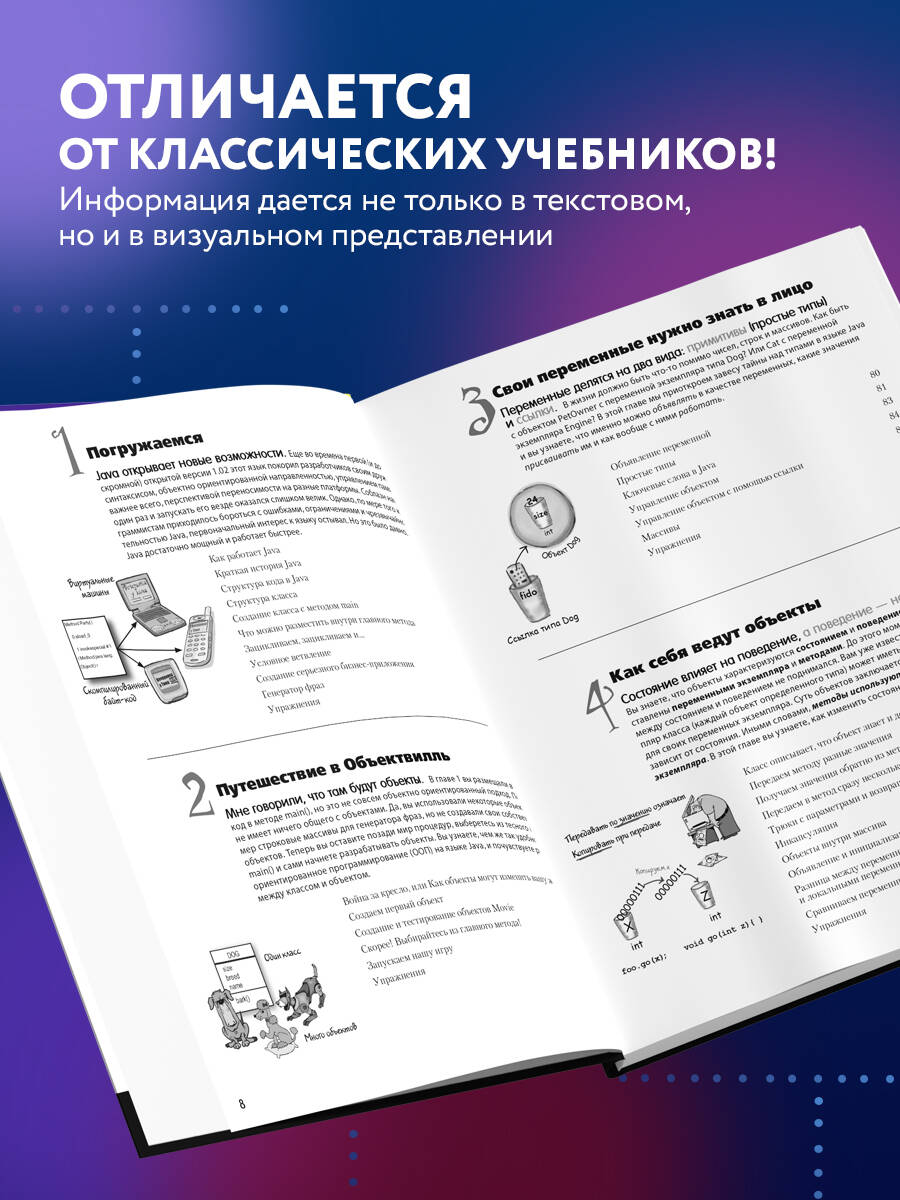 «Изучаем Java» - это не просто книга. Она не только научит вас теории языка Java и объектно-ориентированного программирования, она сделает вас программистом. В ее основу положен уникальный метод обучения на практике. В отличие от классических учебников, информация дается не в текстовом, а в визуальном представлении. Вы освоите в деле все самое нужное: синтаксис и концепции языка, работу с потоками, работу в Сети, распределенное программирование. Вся теория закрепляется интереснейшими примерами и тестами. Почему эта книга столь не похожа на другие? Мы уверены, что ваше время слишком ценно, чтобы тратить его на попытки понять сложные концепции. Книга основана на самых последних достижениях в теории обучения и восприятия. В отличие от скучных текстовых книг, она задействует в процессе обучения сразу несколько органов чувств, сделав усвоение материала максимально эффективным. Пойми разницу между классом и объектом. Узнай, как работать с примитивом как с объектом. Используй полученные знания в Java, чтобы создать игру «Морской бой». Пойми внутреннюю суть объектов.| Издательство | ООО "Издательство "Эксмо" |