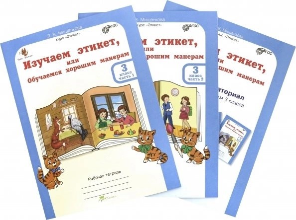 Аннотация: Изучаем этикет, или обучаемся хорошим манерам. 3 класс. Рабочая тетрадь в 2-х частях (+ цветной разрезной материал и наклейки) (количество томов: 3)
