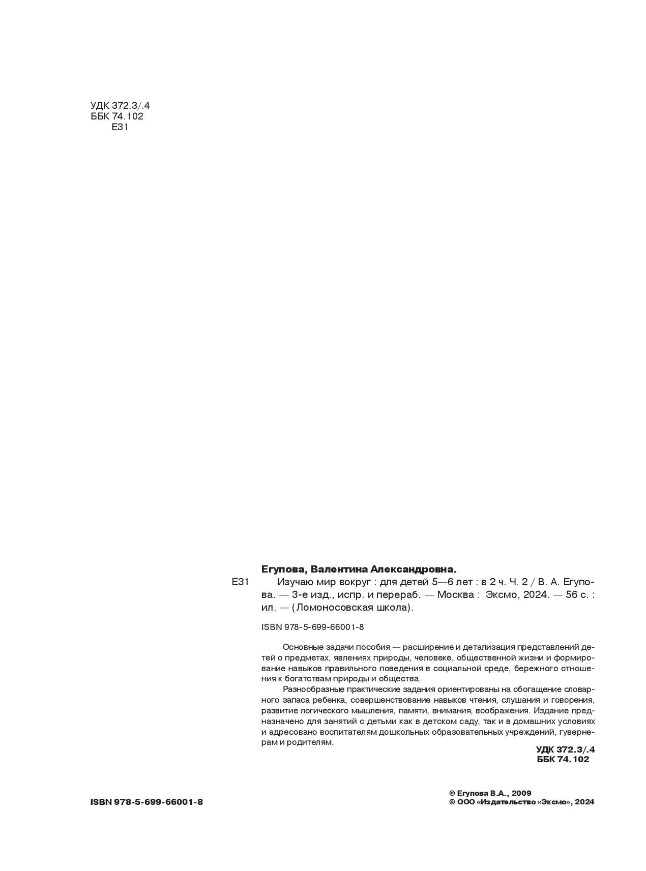 Аннотация: Изучаю мир вокруг: для детей 5-6 лет. Ч. 2