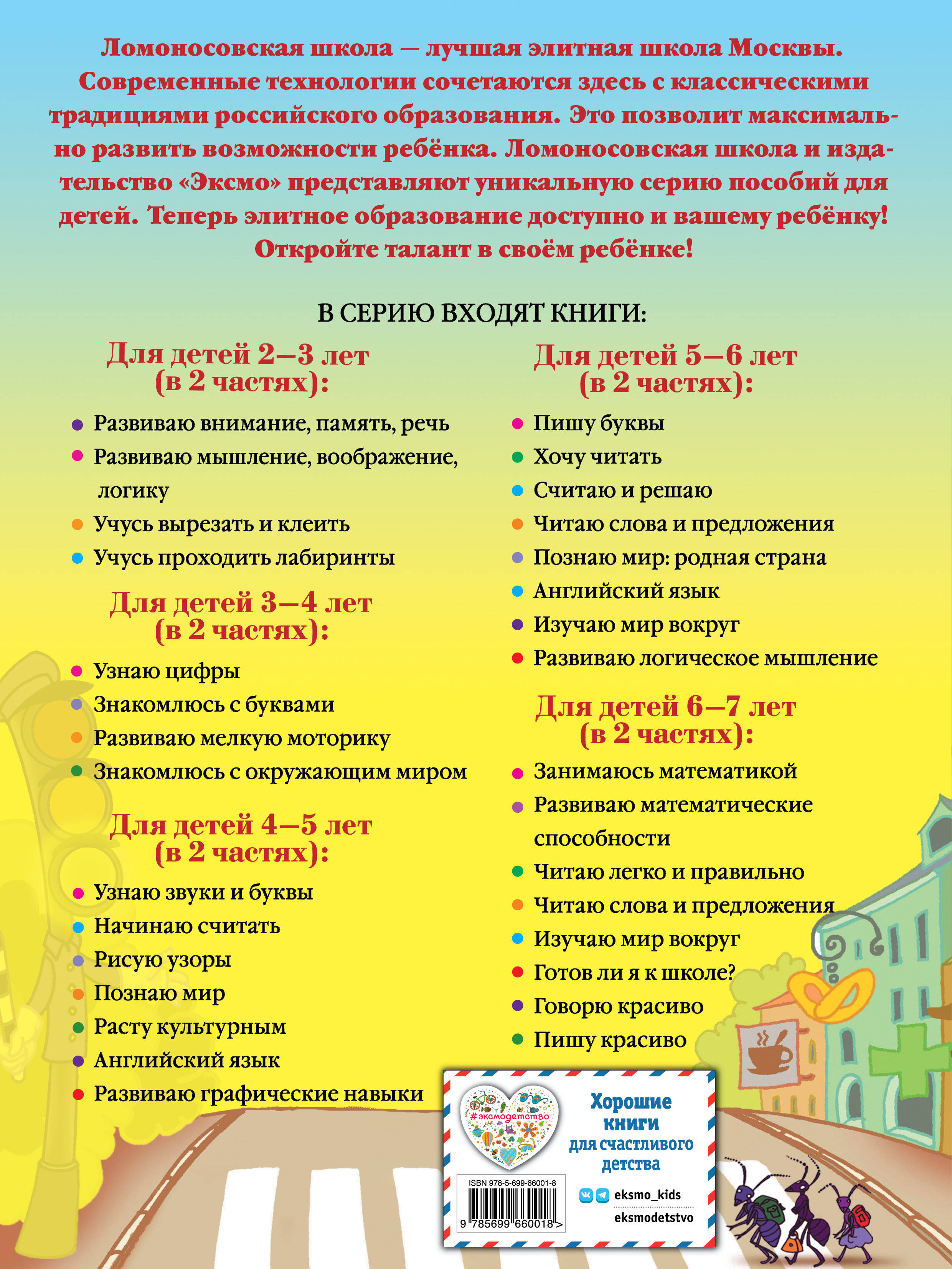 Ломоносовская школа - лучшая элитная школа Москвы. Современные технологии сочетаются здесь с классическими традициями российского образования. Это позволяет максимально развить возможности ребенка. Издательство «Эксмо» и Ломоносовская школа представляют уникальную серию пособий для детей. Теперь элитное образование доступно и вашему ребенку! Откройте талант в своем ребенке!| Издательство | ООО "Издательство "Эксмо" |