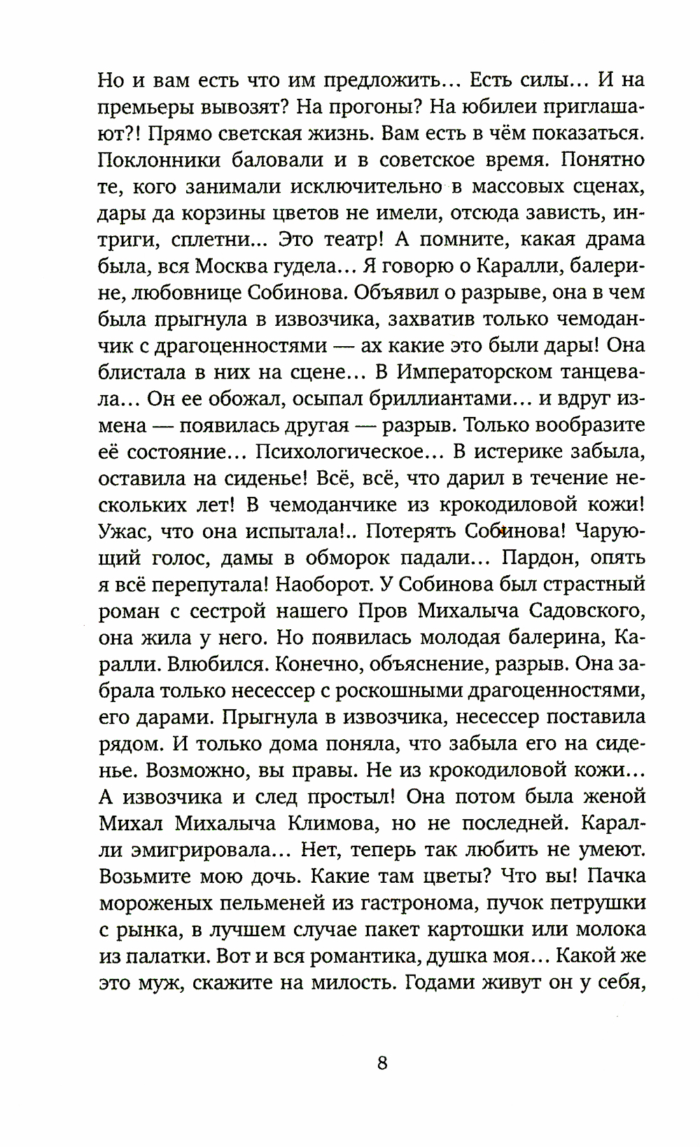 У жанра семейной саги много поклонников. Они любят, когда история раскручивается издалека, движется неторопливо, разговоры начинаются с «а помнишь...». Ольга Никулина поначалу строго следует канону. Но чем ближе к финалу, тем чаще в неспешный, почти старинный роман вторгается современный экшн-детектив, боевик, криминальная драма. Чего не хватает в этом параде жанров, так это фантастики - все очень реально и, к сожалению, знакомо. Бабушка, дочка, внучка. У бабушки - Дом ветеранов сцены, у дочки - подруга-журналистка, у внучки - первая любовь... Но в благополучную семейную историю из драматичного прошлого и влетает та самая муха - «небольшая брошь: на тонком золотом каркасе головка и крылышки в мелких бриллиантах, спинка и брюшко насекомого - овальный изумруд глубокого зеленого цвета». Фамильная драгоценность. «По описанию очень похожа на навозную, если без бриллиантиков, подумала Люба». Этой мухе удается многое: поссорить родных людей, до предела обострить сюжет и даже скрыться восвояси. Как будто ее и не было. Но она была.