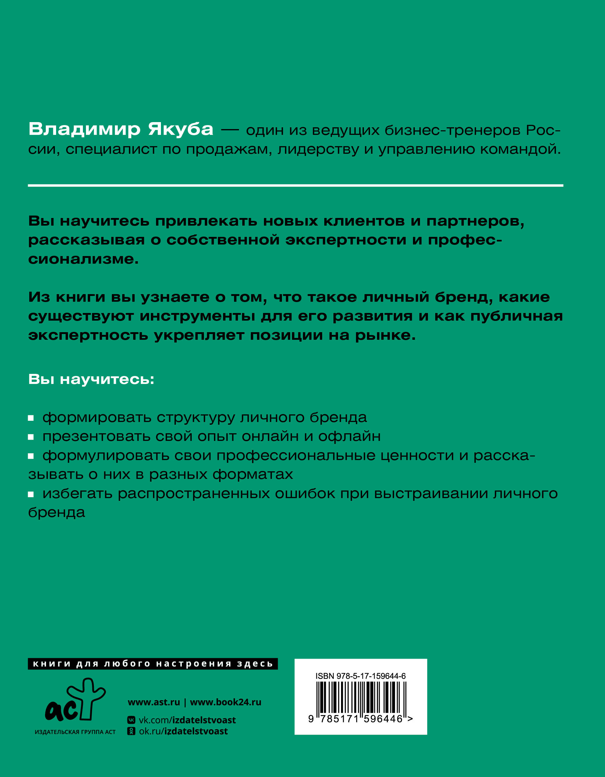 Владимир Якуба - один из ведущих бизнес-тренеров России, специалист по продажам, лидерству и управлению командой. Вы научитесь привлекать новых клиентов и партнеров, рассказывая о собственной экспертности и профессионализме. В книге вы узнаете о том, что такое личный бренд, какие существуют инструменты для его развития и как публичная экспертность укрепляет позиции на рынке. Вы научитесь: • формировать структуру личного бренда • презентовать свой опыт в онлайн и офлайн • формулировать свои профессиональные ценности и рассказывать о них в разных форматах • избегать распространенных ошибок при выстраивании личного бренда| Издательство | Издательство "АСТ" |