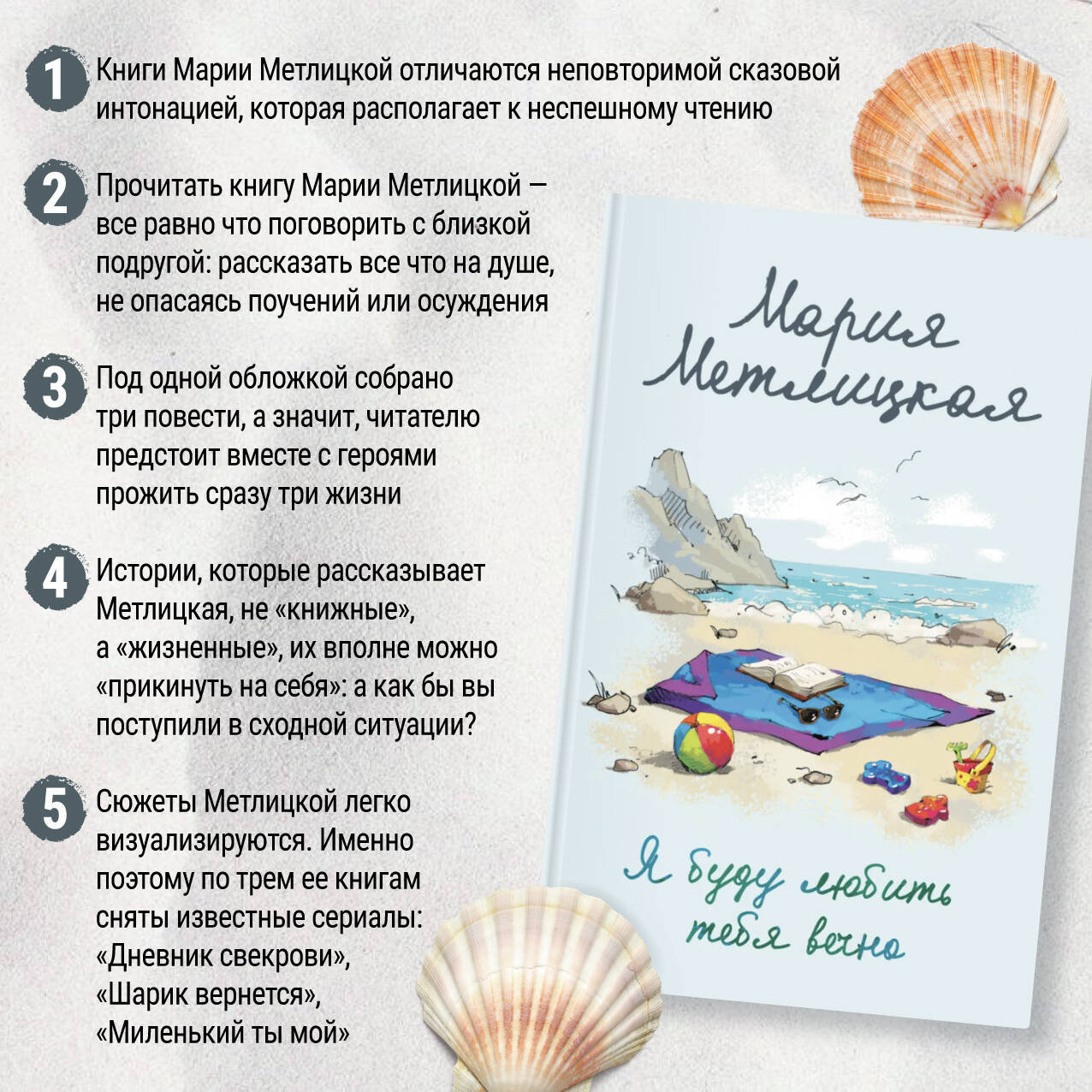 Перу Марии Метлицкой принадлежит множество книг, изданных совокупным тиражом более двух миллионов экземпляров. Большинство из них стали бестселлерами. «Я буду любить тебя вечно» - не исключение. Эта книга уже успела стать любимой у десятков тысяч читательниц. Судьбы, о которых рассказывает автор, узнаваемы. Истории - вполне типичны и жизненны, а герои похожи на нас самих. Все в детстве читали сказку про Золушку. И все мечтали оказаться на ее месте - встретить Принца, который приведет в прекрасную, блестящую жизнь и сделает счастливой. Милочка встретила Принца, который исполнил ее мечту - из нищего барака привел ее в шикарную квартиру, завалил подарками, сделал счастливой. Но главное - она его полюбила. По-настоящему, на всю жизнь. Сказка про Золушку на этом закончилась. Началась жизнь. А жизнь порой бывает несправедлива и сурова. Человек слаб, соблазн поменять одного принца на другого, более удачливого, есть всегда. Как поступит Милочка - как в сказке или как в жизни?| Издательство | Эксмо |