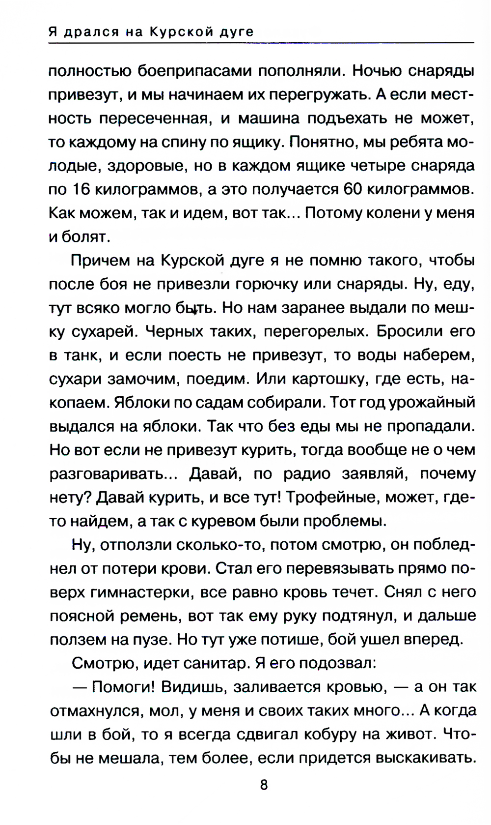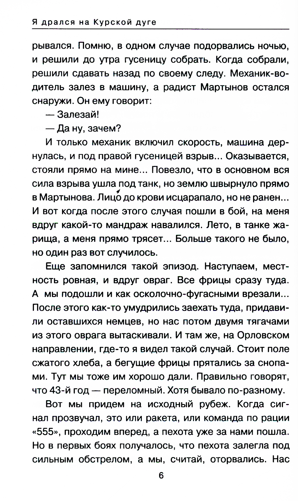 Продолжавшаяся долгих 50 дней и ночей Курская битва (5 июля - 23 августа 1943 года) стала самым грандиозным сражением Второй Мировой. Однако по своему размаху, ожесточенности, насыщенности боевой техникой и участию колоссального количества войск противостояние на Курской дуге вообще не имеет себе равных в истории. На страницах этой книги вы услышите живые голоса танкистов, артиллеристов, минометчиков и простых пехотинцев Красной Армии, которые летом 1943-го сорвали последнюю крупную наступательную операцию Вермахта, а затем перейдя в контрнаступление обеспечили коренной перелом в ходе Великой Отечественной войны. «Танки пошли на танки, и становилось по-настоящему жутко, когда на наших глазах башни от Т-34 отлетали после прямых попаданий. К концу дня все вокруг было разбито, все в дыму, запах гари, перевернутые орудия, горящие танки, и горы трупов. Все горело...» «Зарево над Прохоровкой нельзя описать словами… Разведвзвод занял оборону под подбитыми танками, и мы еще вечером отбили две атаки немецкой пехоты...» «Юнкерсы не слезали, артиллерия все время обстреливала, минометы. Страшно было. Вся земля поднялась вверх. На зубах песок, ничего не видно, гарь стояла даже днем...» «На нас пошло 25 немецких танков в сопровождении пехотного десанта. Нам нечем было остановить танки. Уже не было противотанковых гранат. Позади нас находилось наше минное поле «нашпигованное» на каждом метре противопехотными минами. Немцы окружили нас с трех сторон, расстреливая из танковых пулеметов. У нас был выбор - смерть или плен. Мы выбрали смерть...»| Издательство | Яуза-каталог |