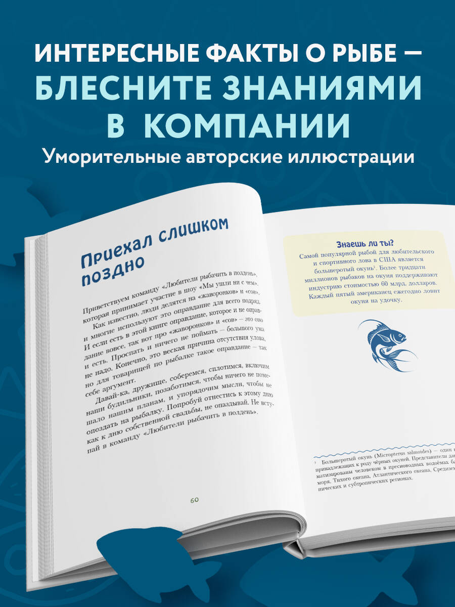 В жизни каждого рыбака бывают неудачные дни, когда не клюет - и все тут. Вдвойне обидно, если в это же время сосед ловит рыбу одну за другой, а тебе попадаются только старые башмаки! Как достойно ответить на неизбежные подколы друзей и близких и не упасть в грязь лицом окончательно? Эта книга поможет объяснить любую неудачу на рыбалке: будь то плохая погода, не та наживка, неисправная удочка или просто потому, что боги рыбалки на вас разгневались! В ней собраны самые остроумные шутки, которыми можно оправдать неудачную рыбалку, выйти из неловкого положения и рассмешить друзей. Упустили огромного карпа, потому что от волнения вспотели руки? Забыли пиво, поэтому рыбалка с самого начала не задалась? А может, на борту вашей лодки было много нытиков? Выбирать вам, что на этот раз отпугнуло вашу удачу! «За всю жизнь у меня, как и у всех рыбаков, бывали неудачные дни, когда ничего не получается. Я думал, что уже слышал все возможные оправдания от моих друзей. Сейчас понимаю, что сильно ошибался! Теперь у меня в запасе много отмазок для оправдания неудачной рыбалки! Хотя, даже без улова, на самом деле день нельзя считать неудачным, если вы все-таки вышли на воду». - Отзыв с «Амазон»| Издательство | ООО "Издательство "Эксмо" |